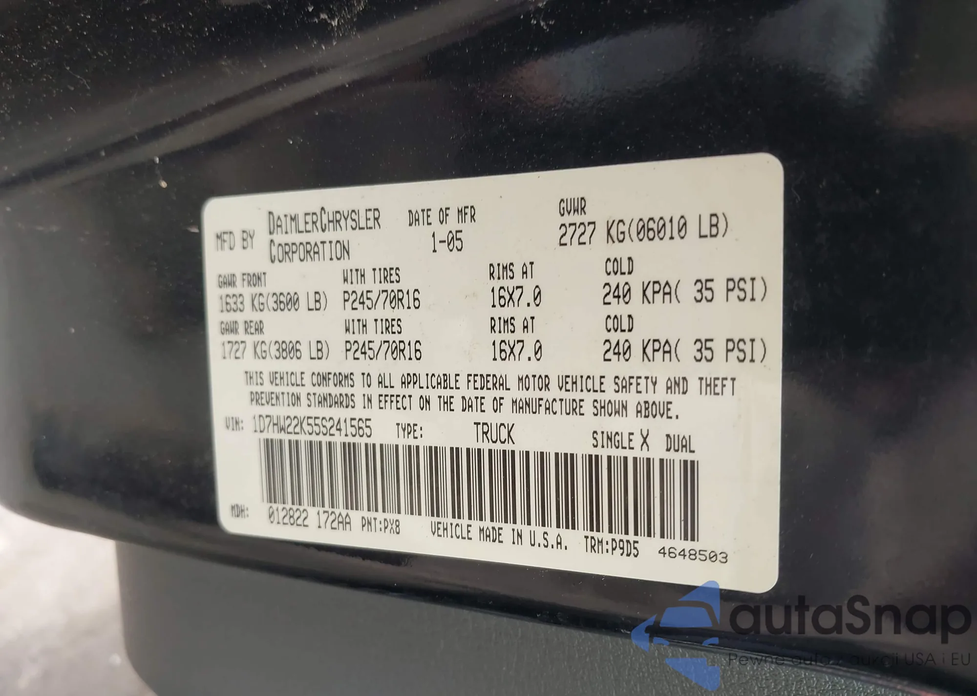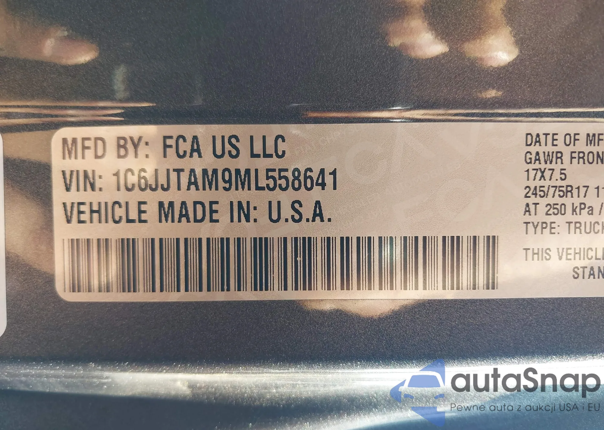 • VIN 1C6JJTAM9ML558641