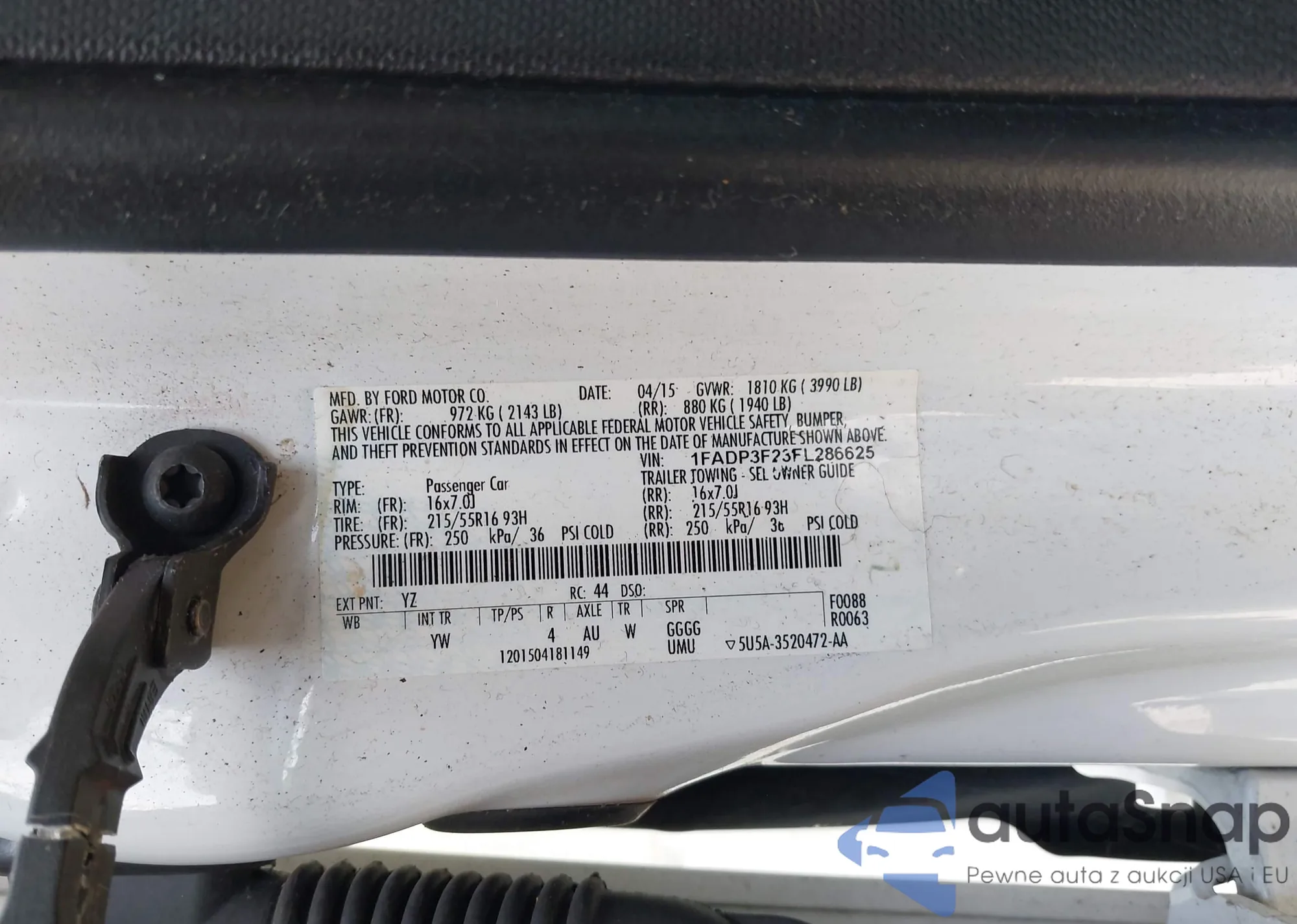 LOT: 43023266 VIN: 1FADP3K21FL304707