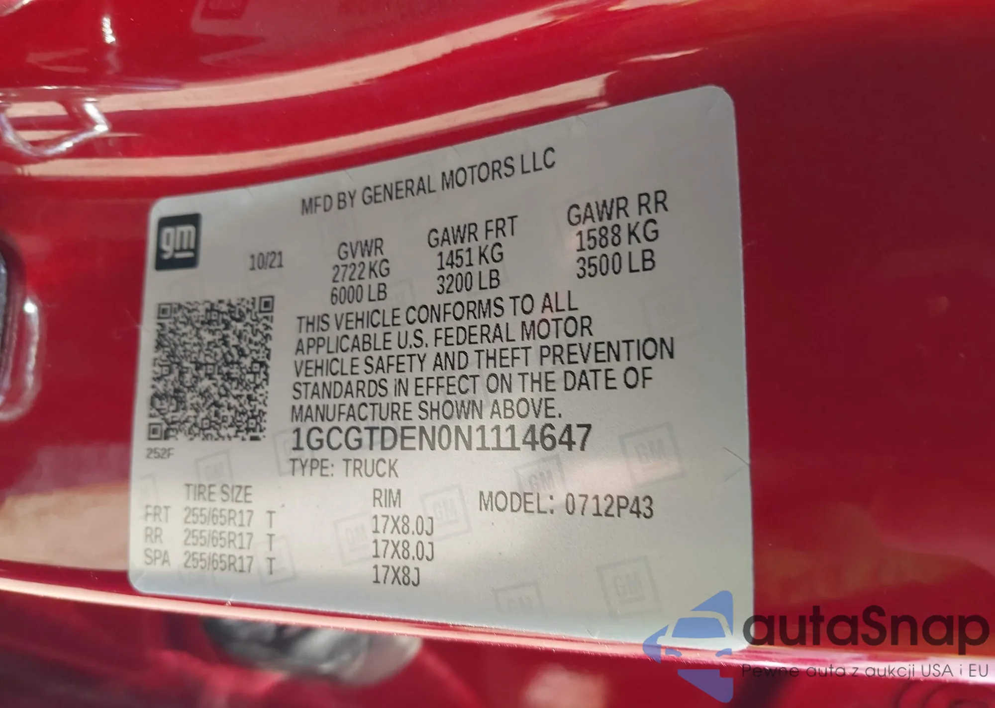LOT: 43431372 VIN: 1GCHC23216F128143
