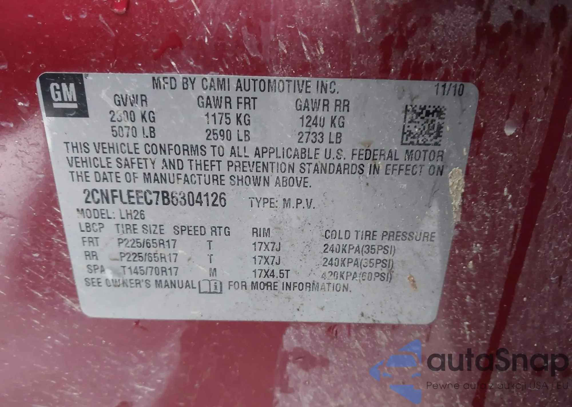 • VIN 2CNFLEEC7B6304126
