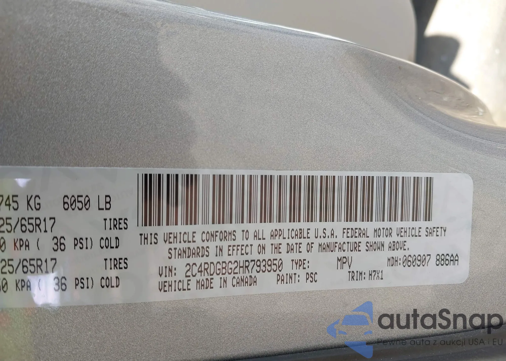 • VIN 2C4RDGBG2HR793950
