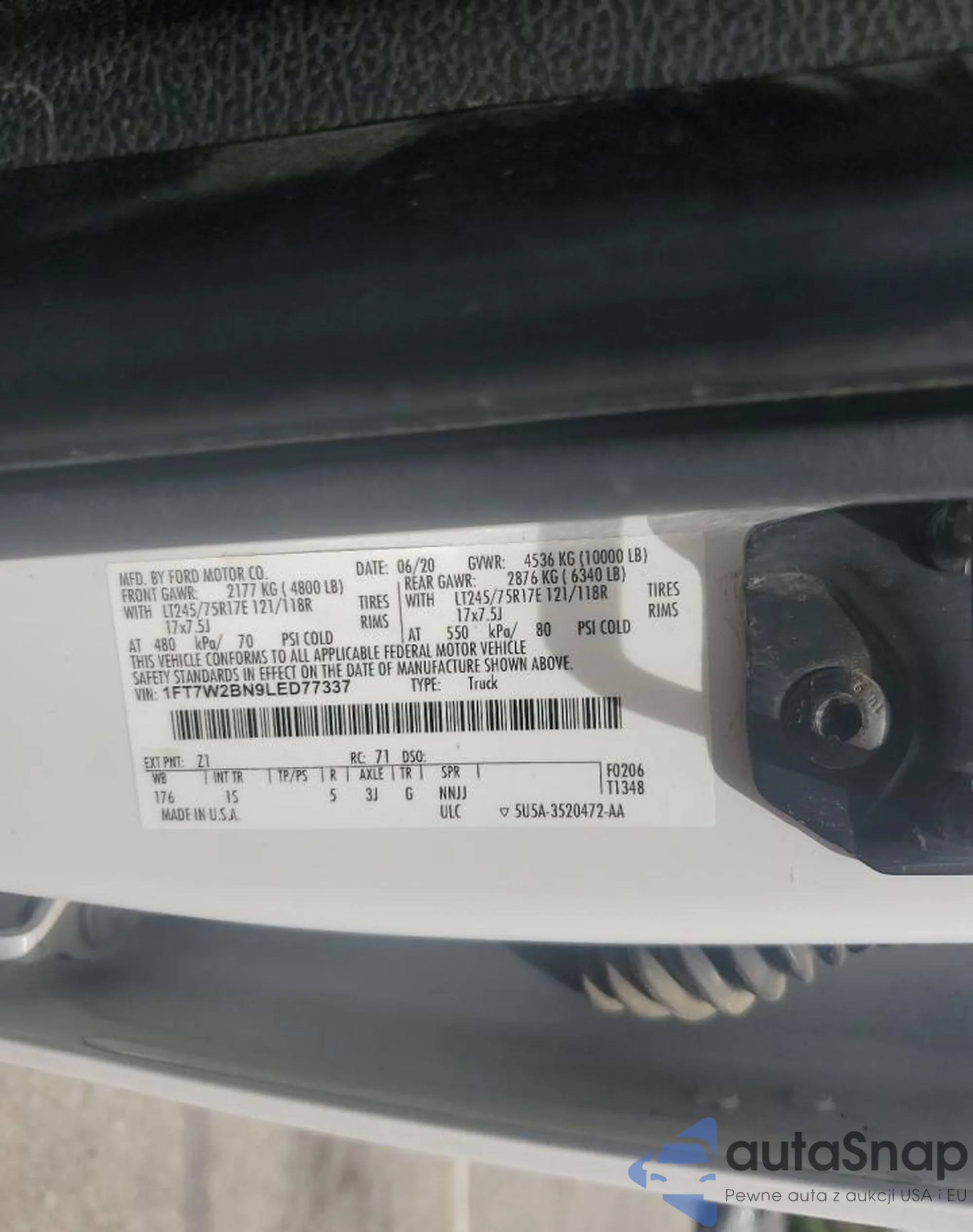 LOT: 69576855 VIN: 1FT7W2BN9LED77337