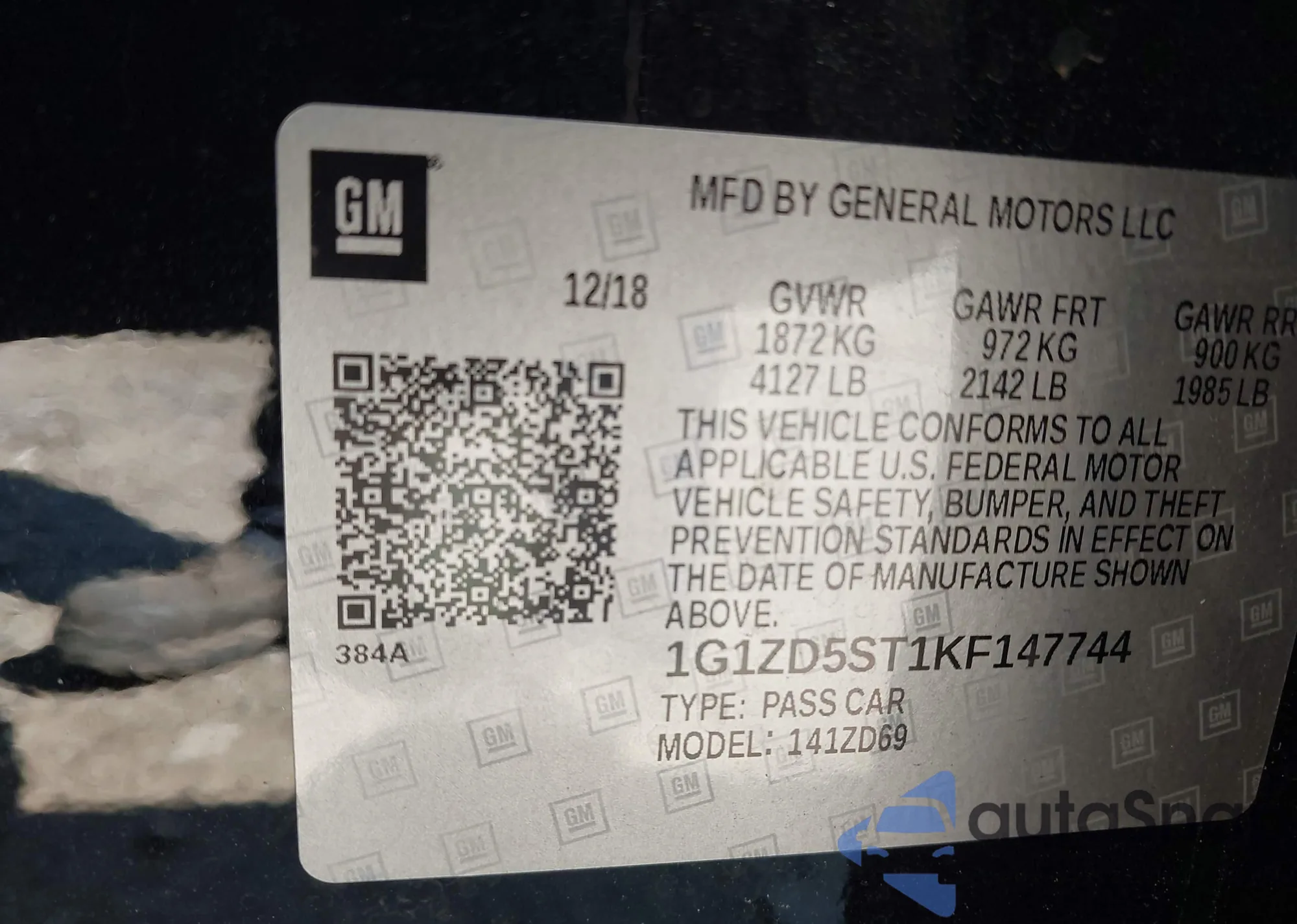 • VIN 1G1ZD5ST1KF147744