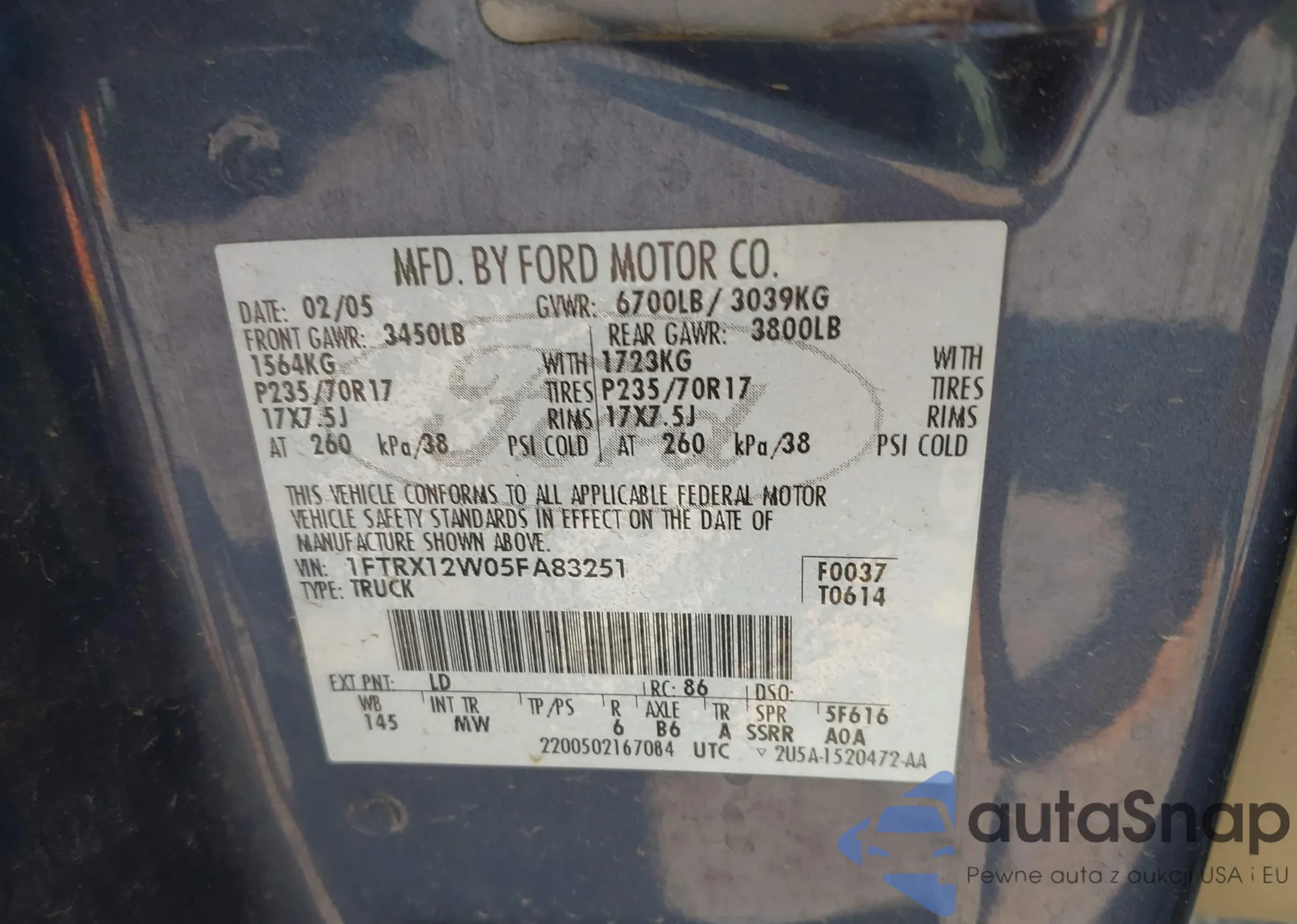 • VIN 1FTRX12W05FA83251