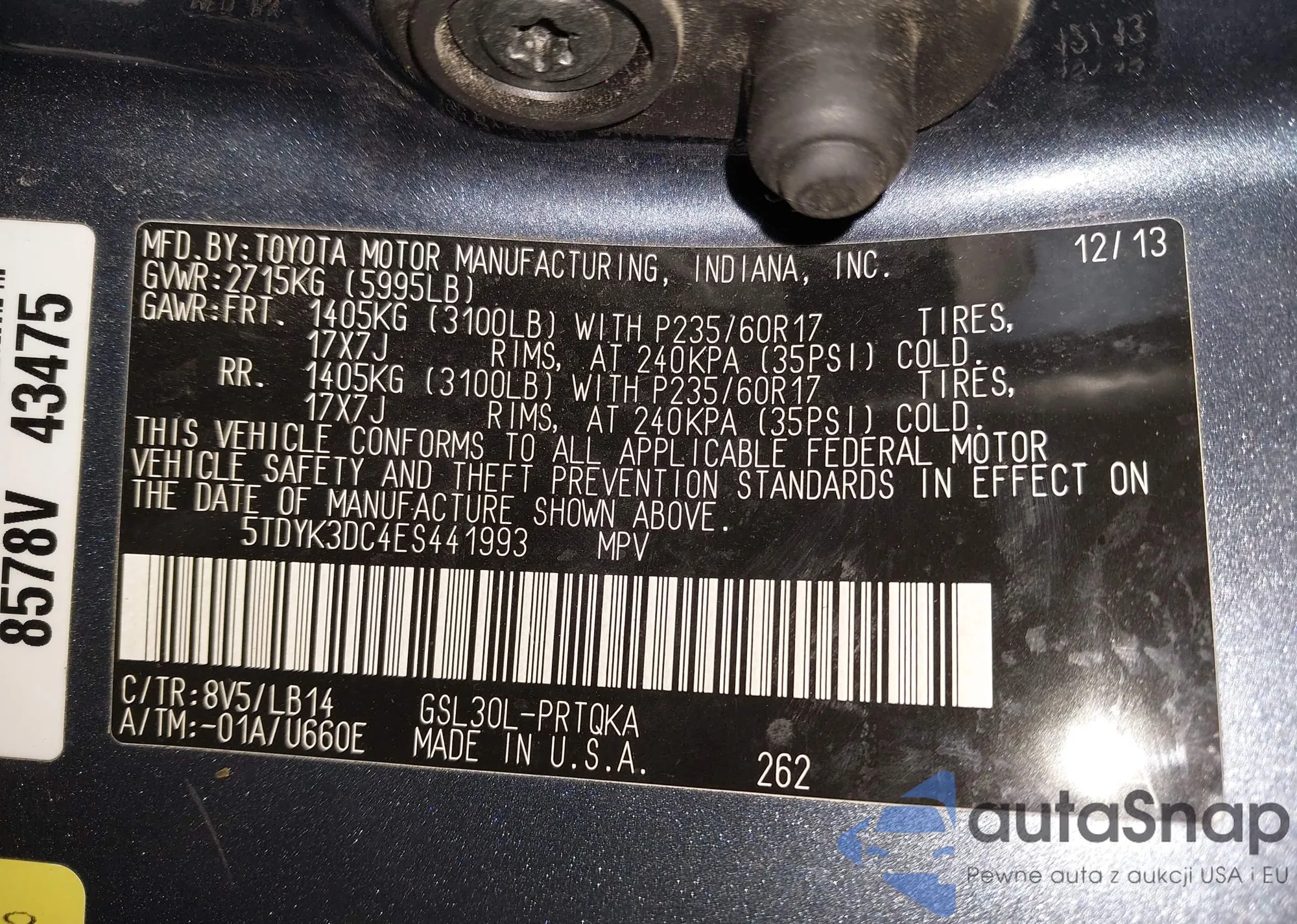 • VIN 5TDYK3DC4ES441993