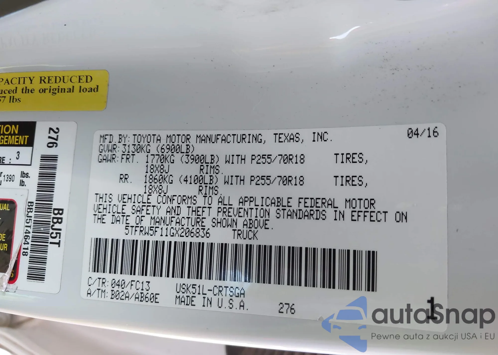 • VIN 5TFRW5F11GX206836