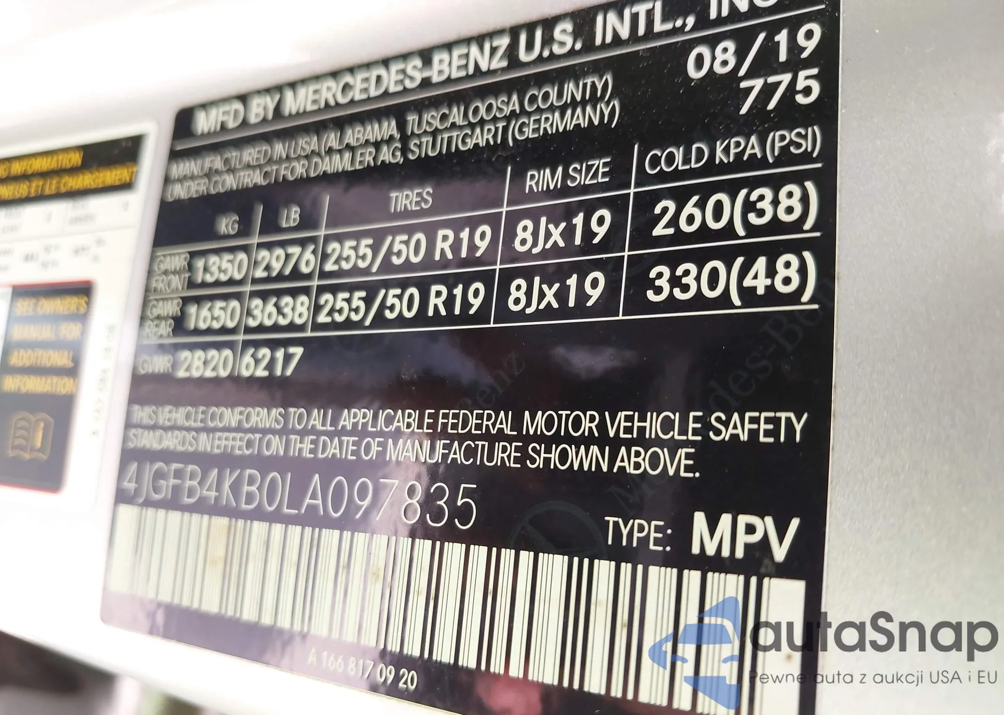• VIN 4JGFB4KB0LA097835