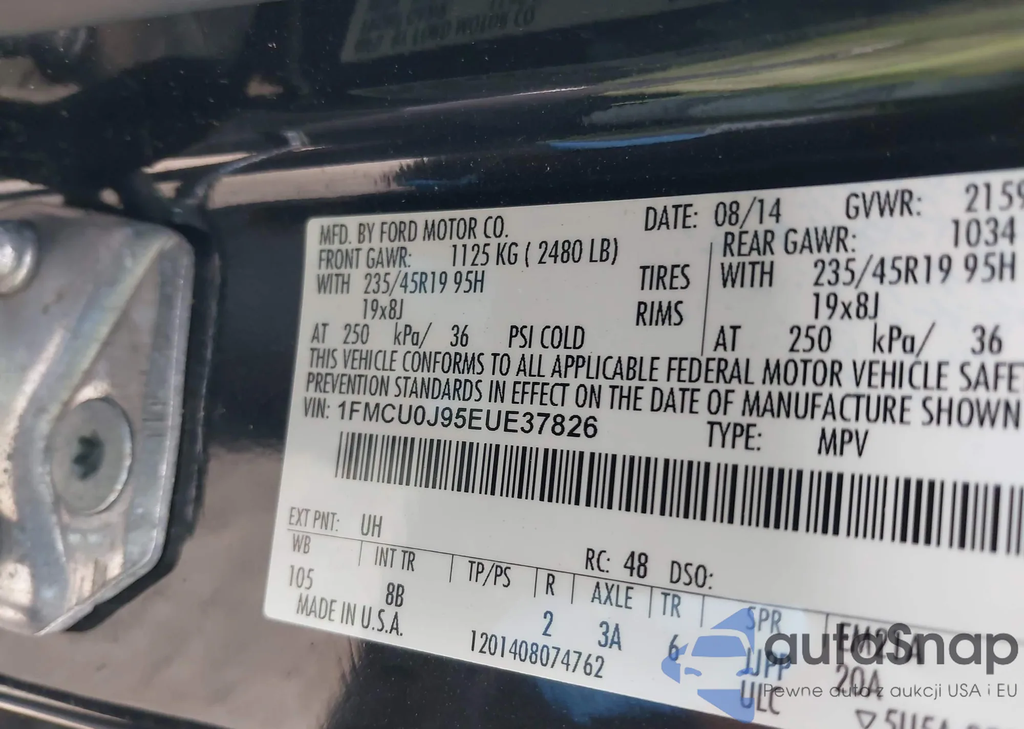 • VIN 5J6RM4H73EL018626