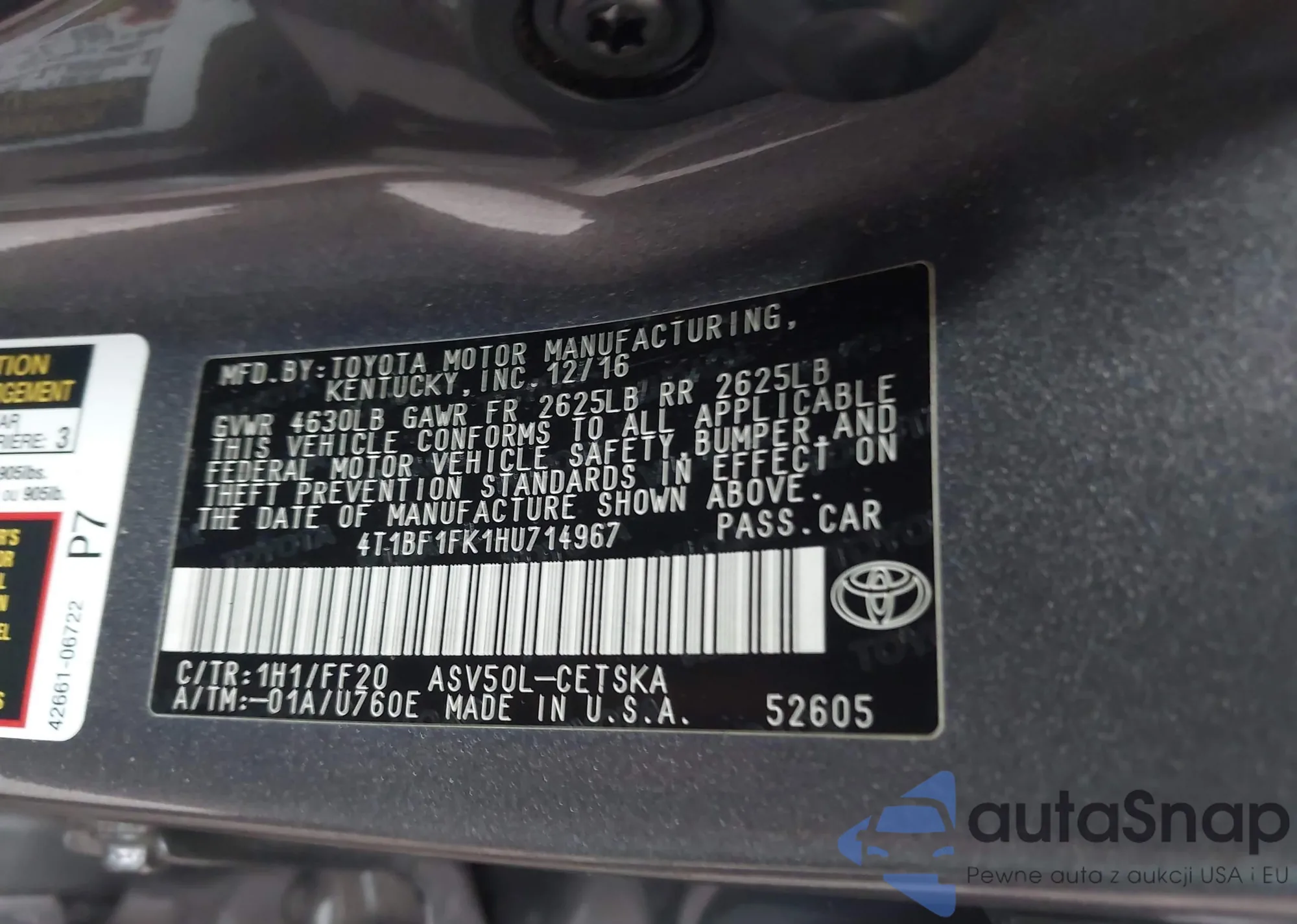 • VIN 4T1BF1FK1HU714967