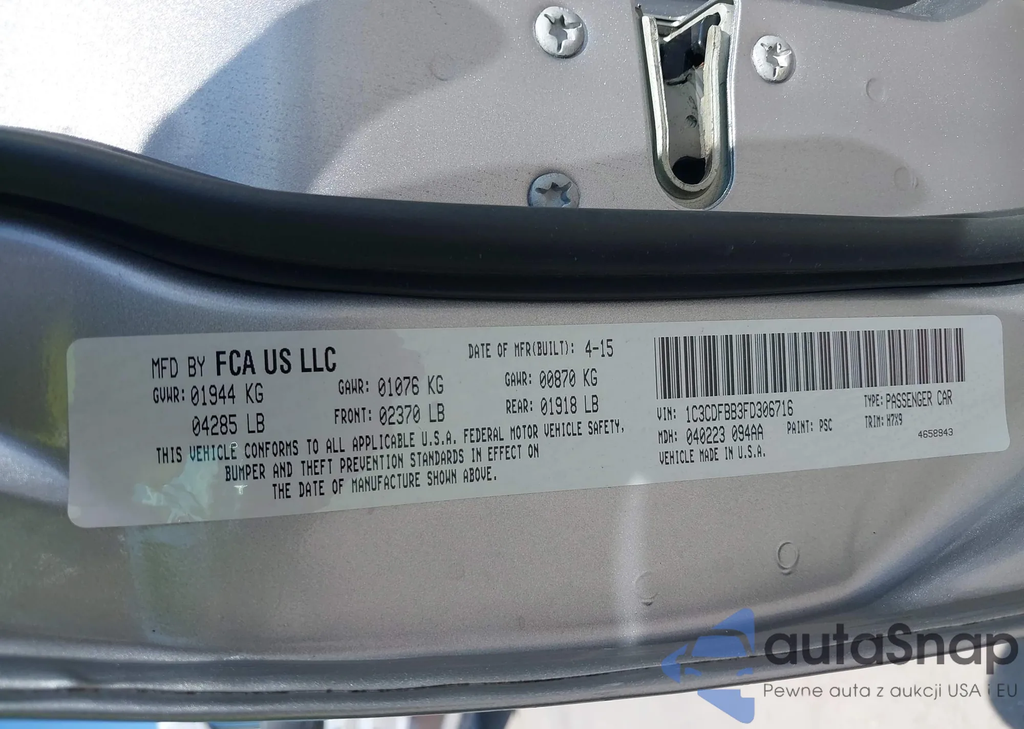 LOT: 43012484 VIN: 1C3CDFBB3FD306716