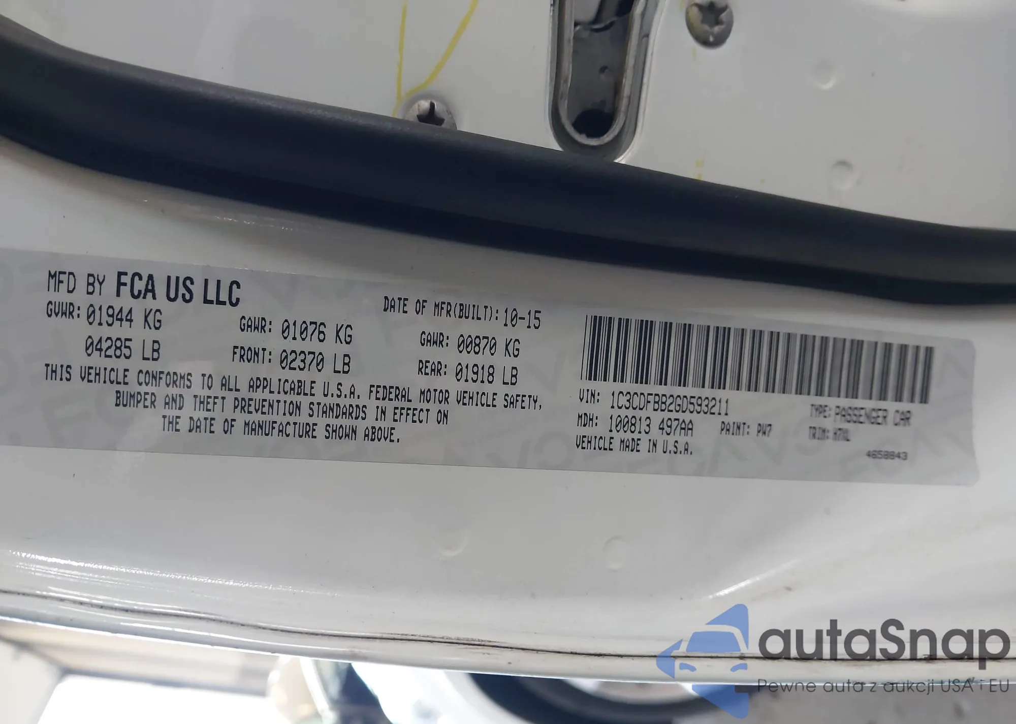 LOT: 43018283 VIN: 1C3CDFBB2GD593211