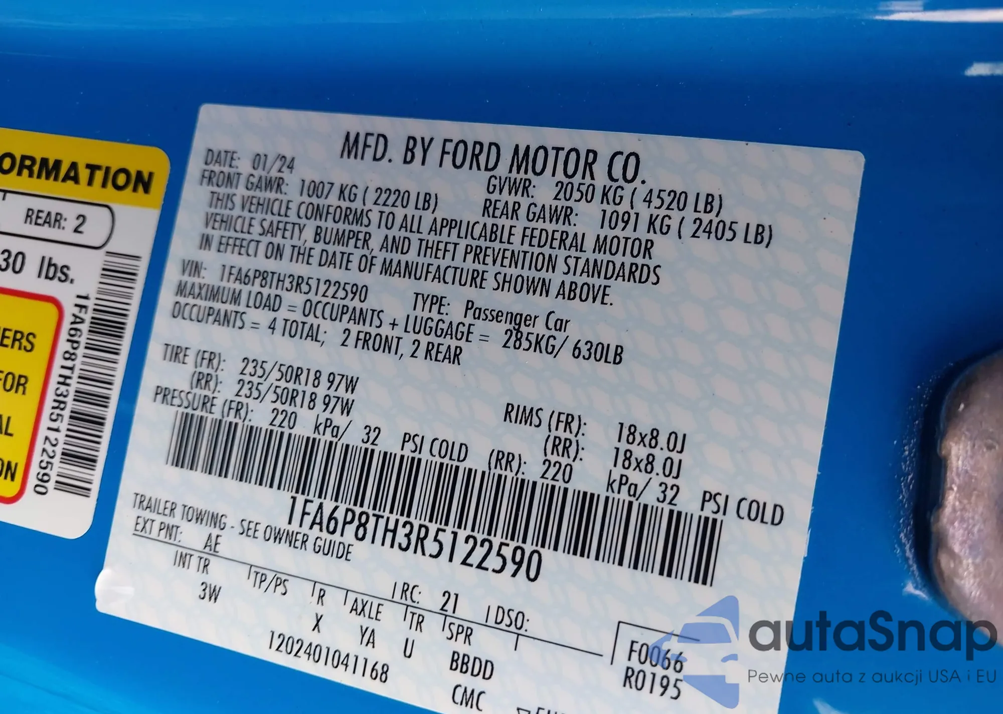 • VIN 1FA6P8THXJ5138175