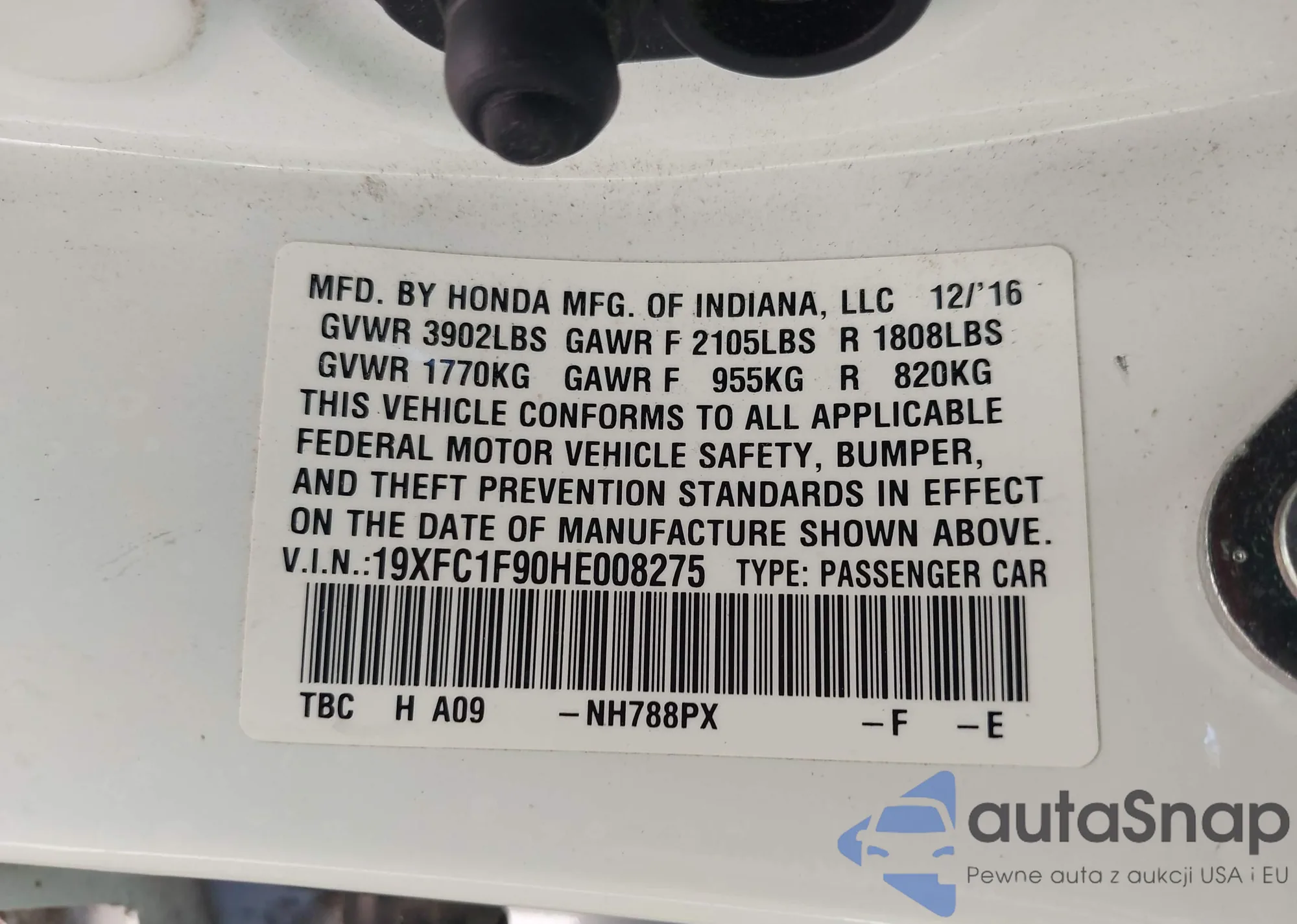 LOT: 43044834 VIN: 19XFC2F70JE003927