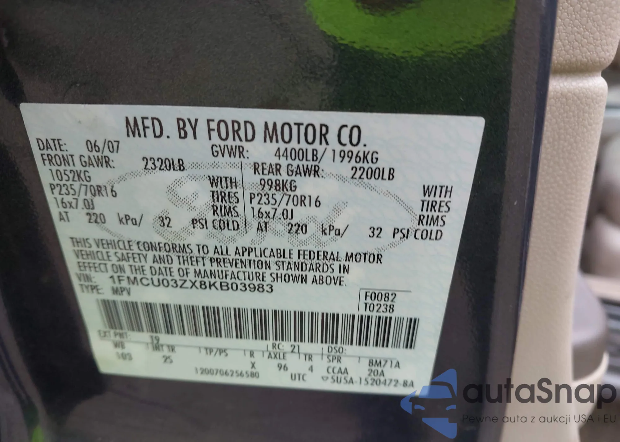 • VIN 1FMCU03ZX8KB03983
