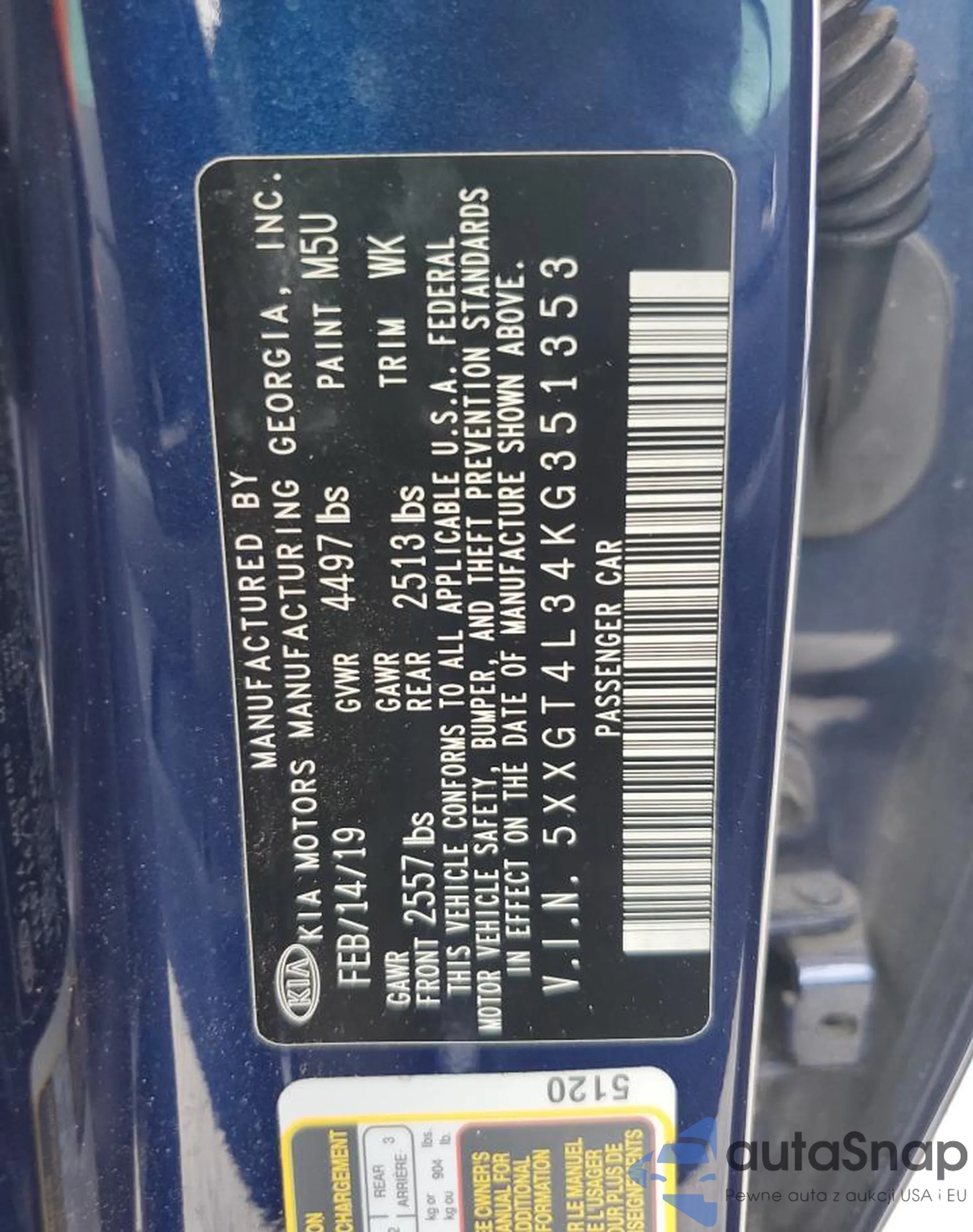 • VIN 5XXGT4L34KG351353