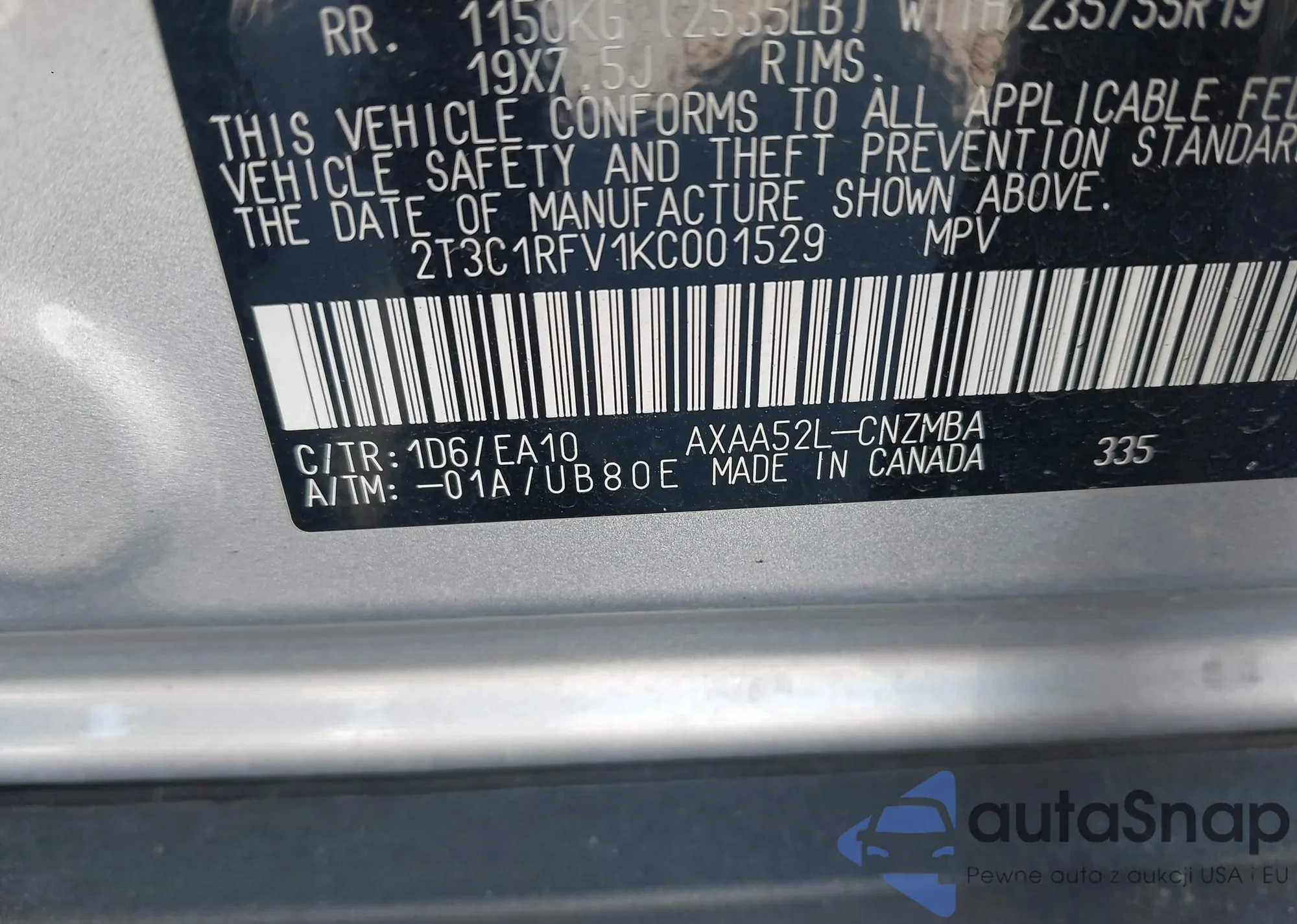 • VIN 2T3C1RFV1KC001529