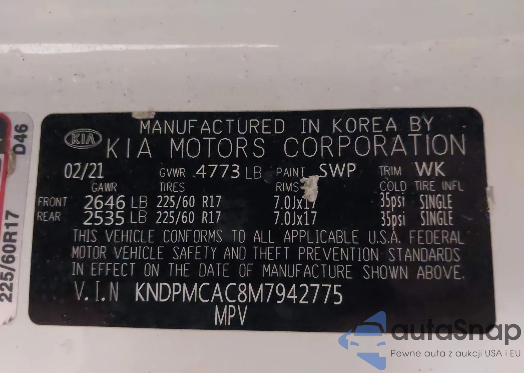 • VIN KNDPMCAC8M7942775