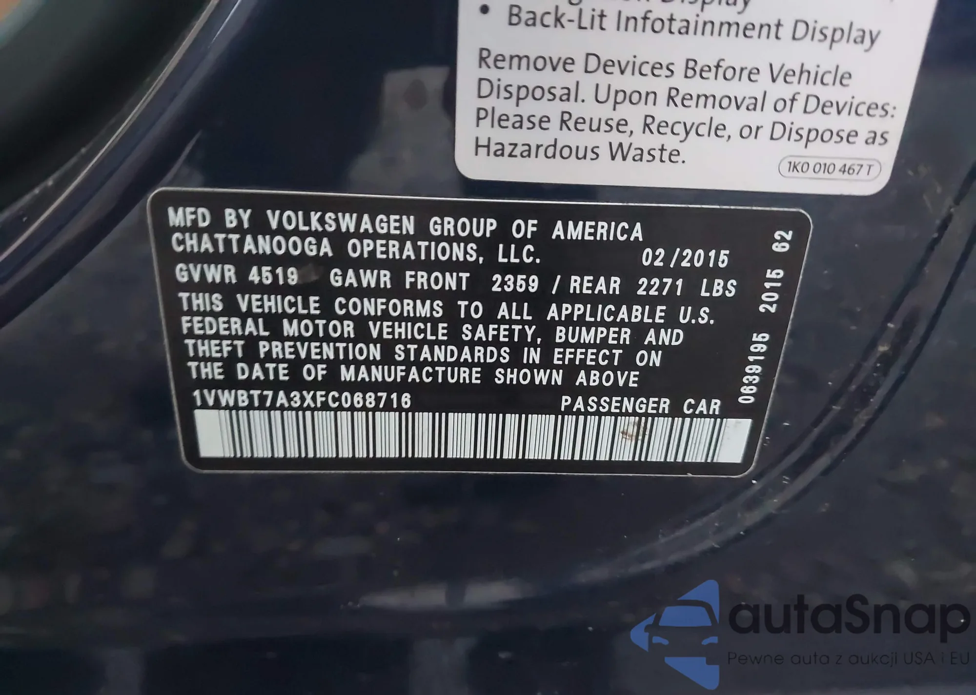 • VIN 1VWBT7A3XFC068716