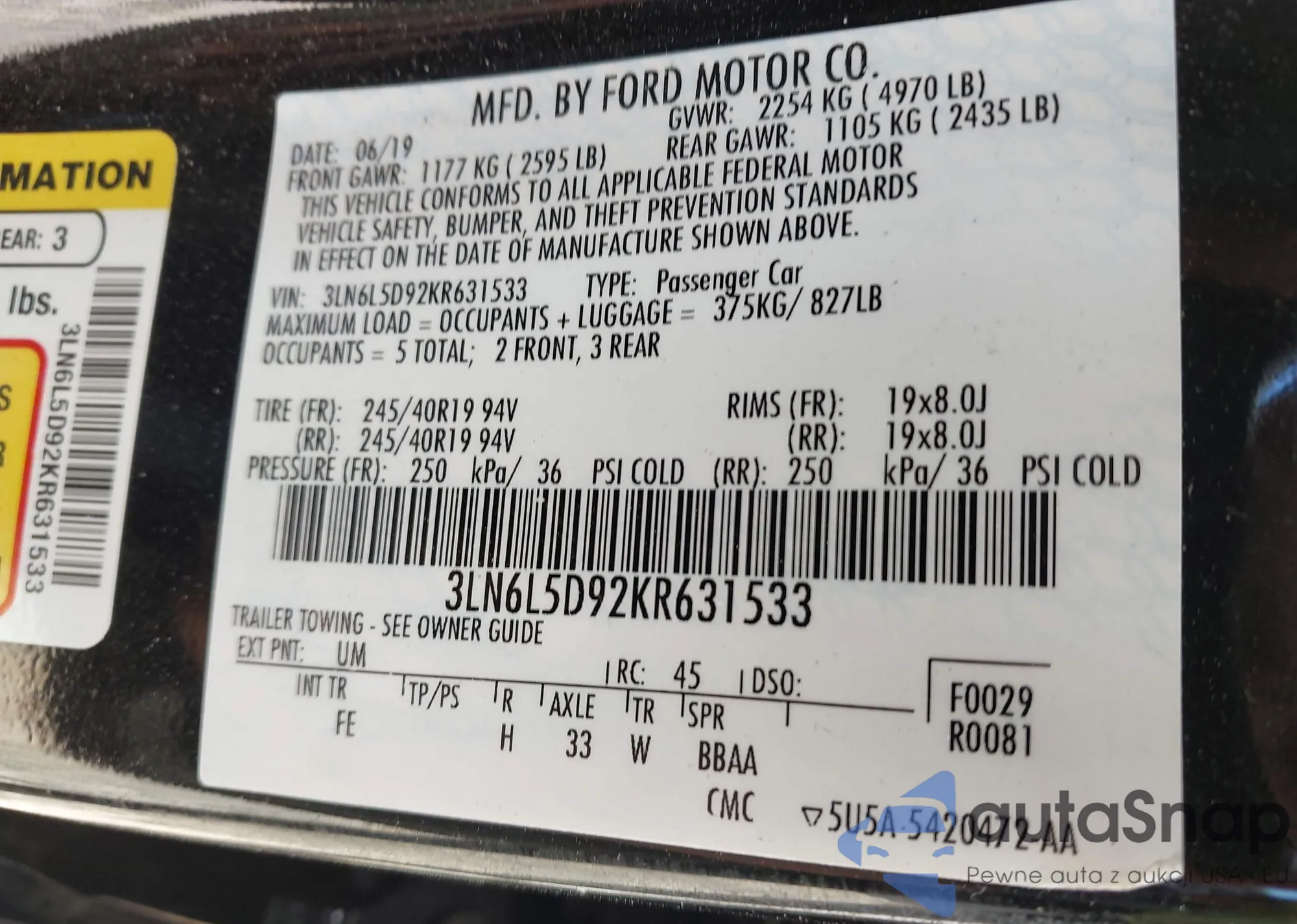 • VIN 3FA6P0HD1ER313164