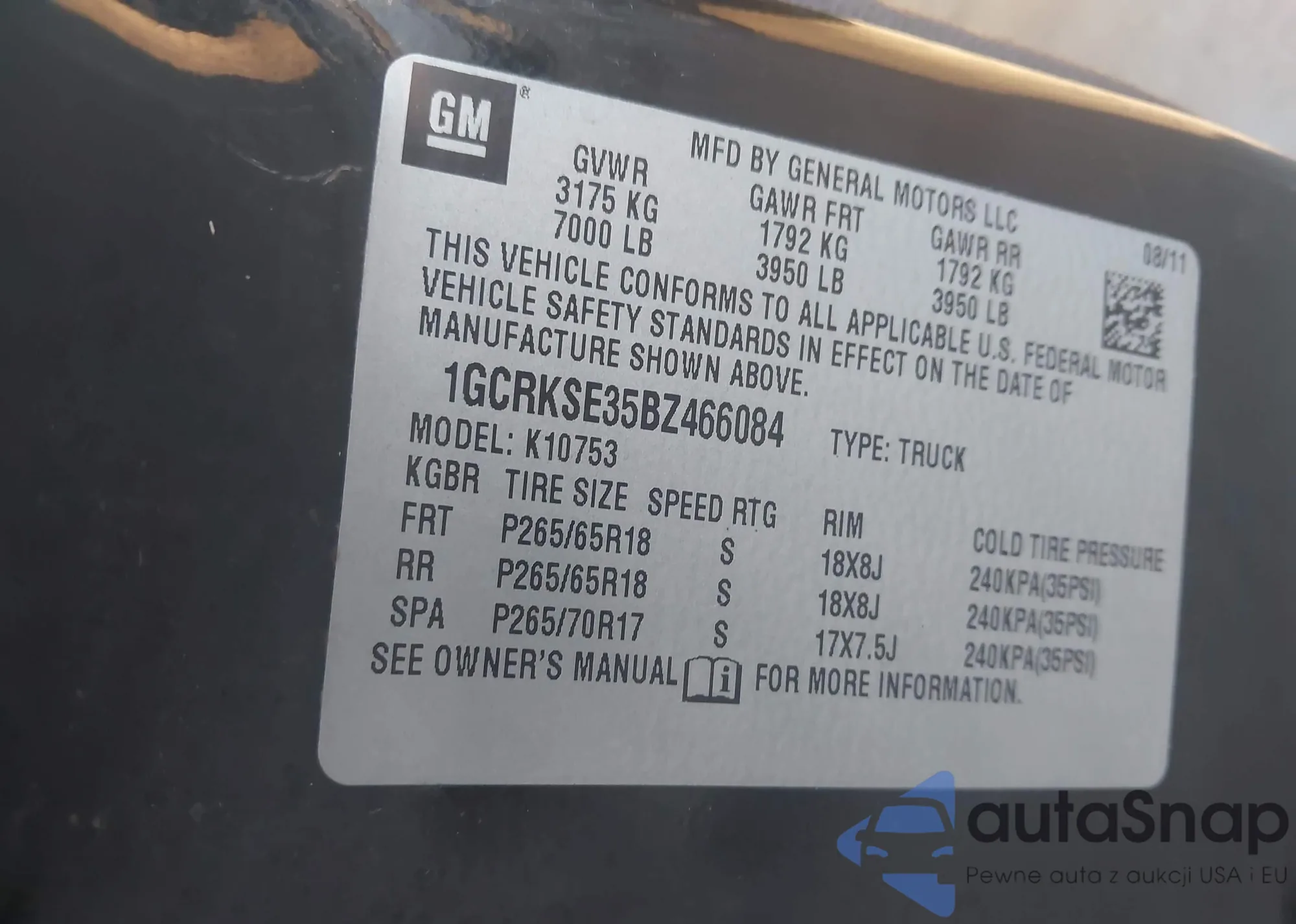 • VIN 1GCRKSE35BZ466084