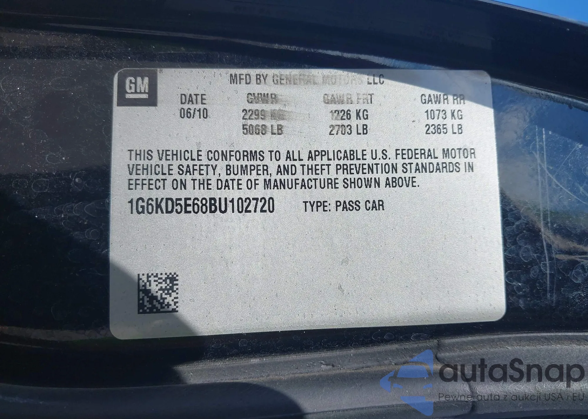 • VIN 1G6KD5E68BU102720