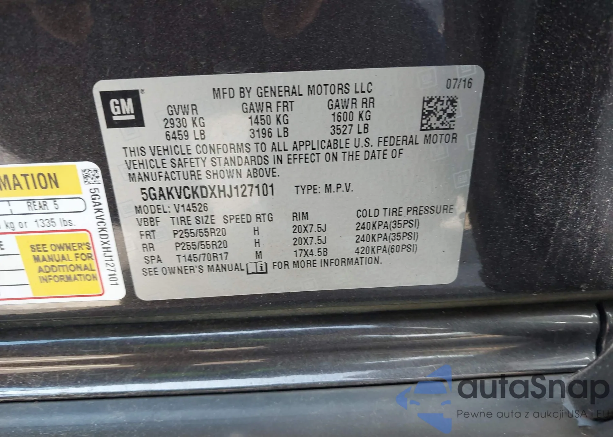 • VIN 5GAKVCKDXHJ127101