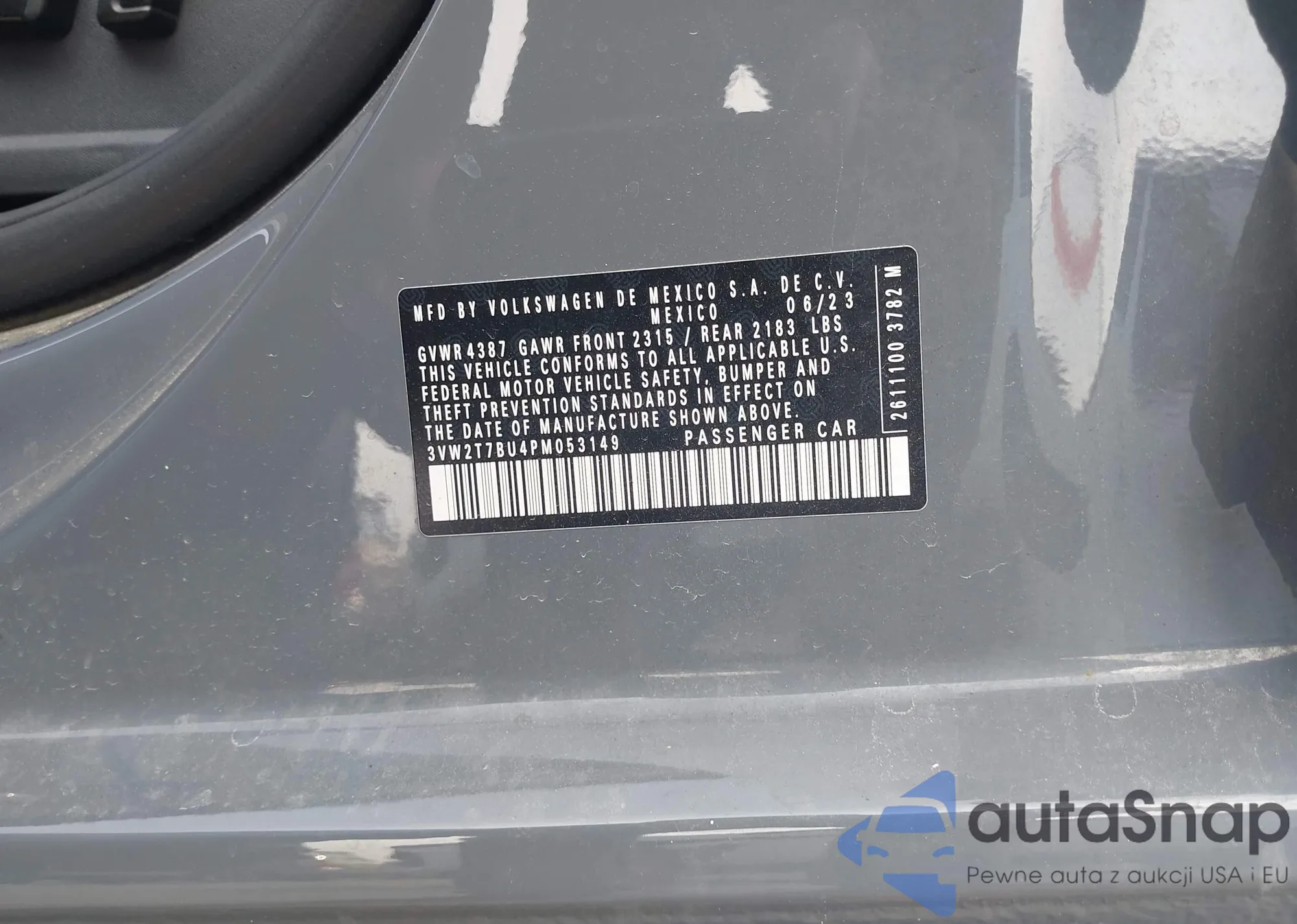 • VIN 3VW2T7BU4PM053149