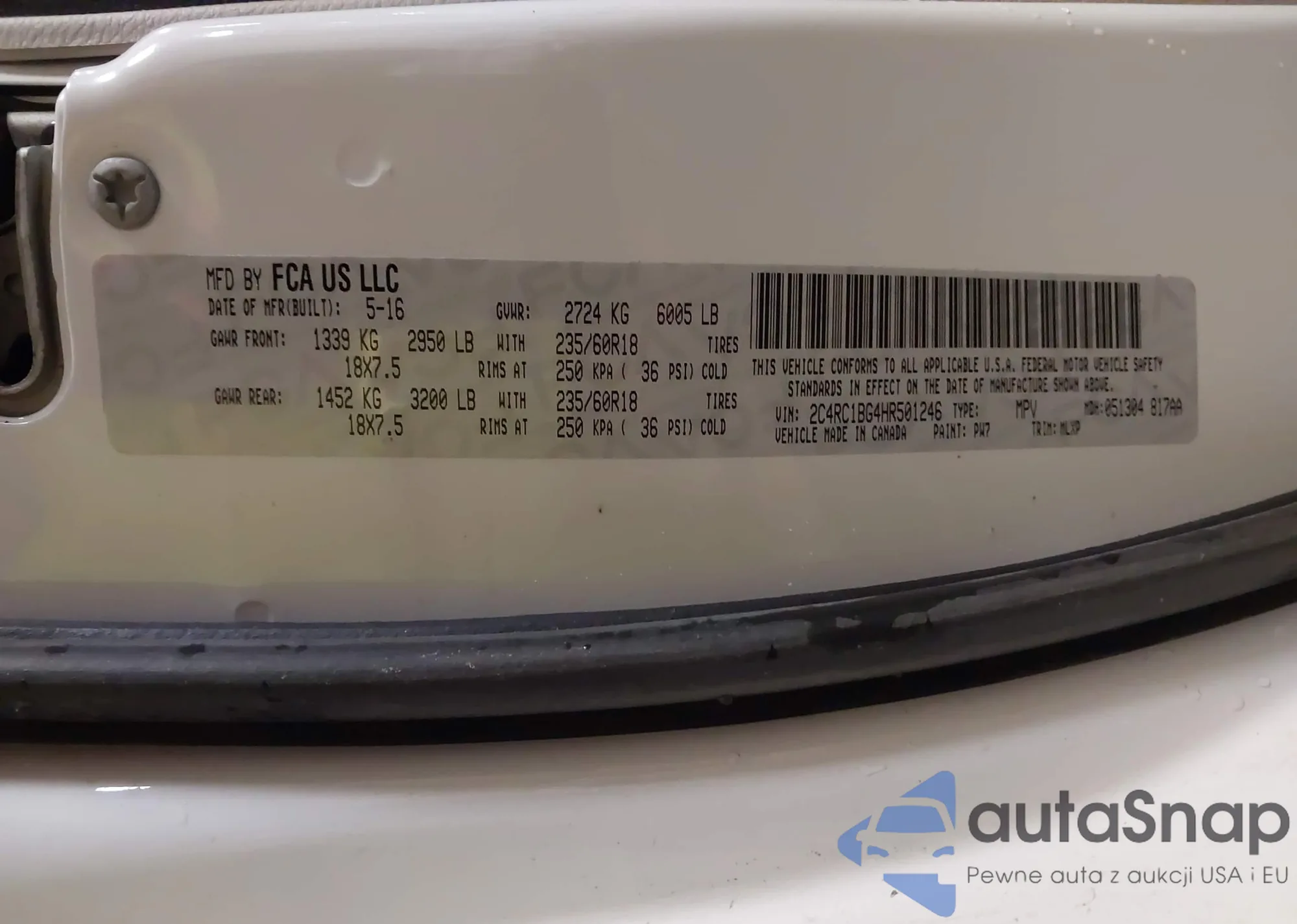 • VIN 2C4RC1BG4HR501246