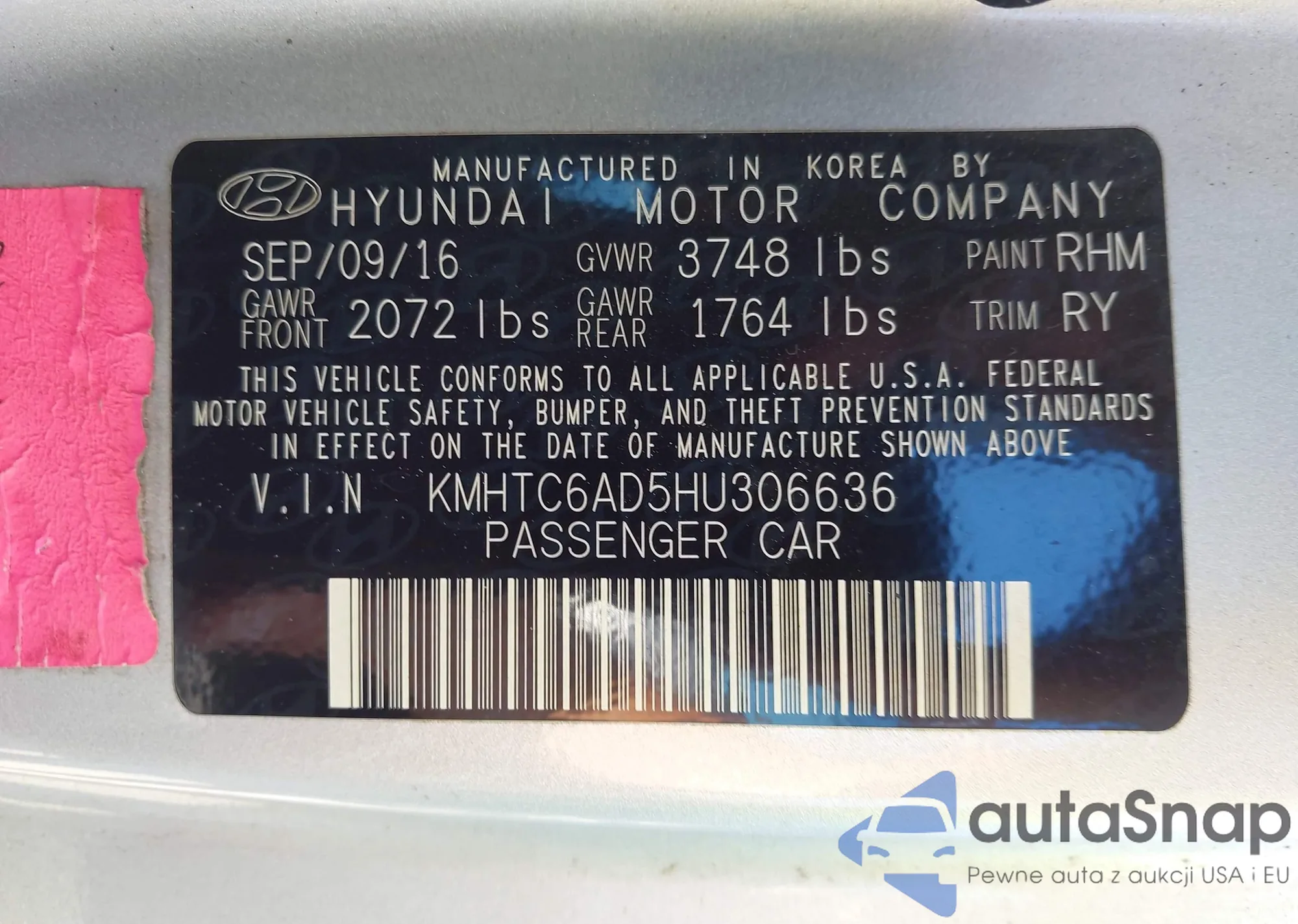• VIN KMHHU6KJXFU123270