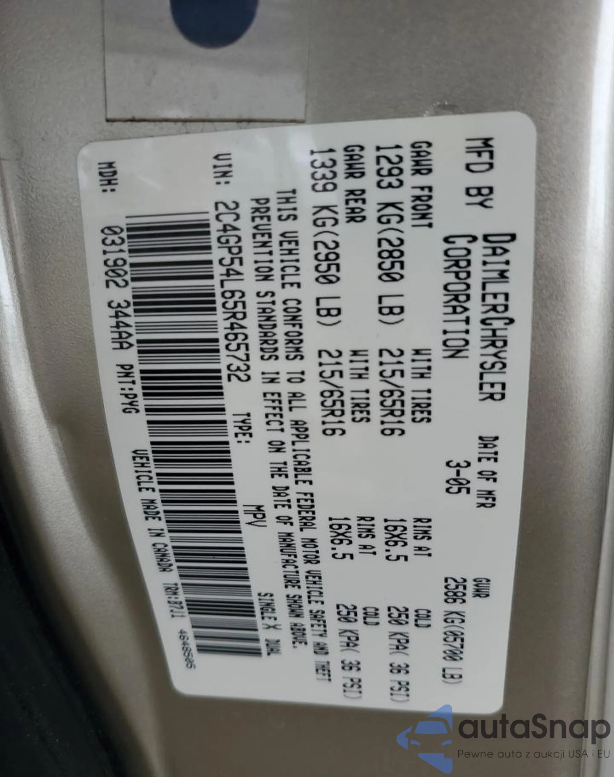 • VIN 2C4GP54L65R465732