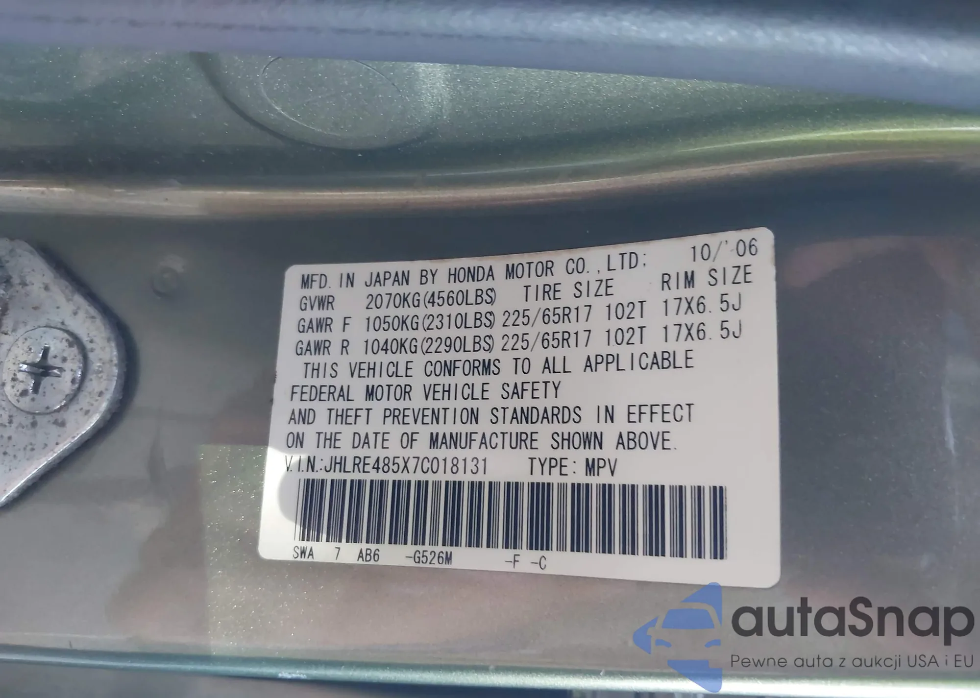 • VIN JHLRE485X7C018131