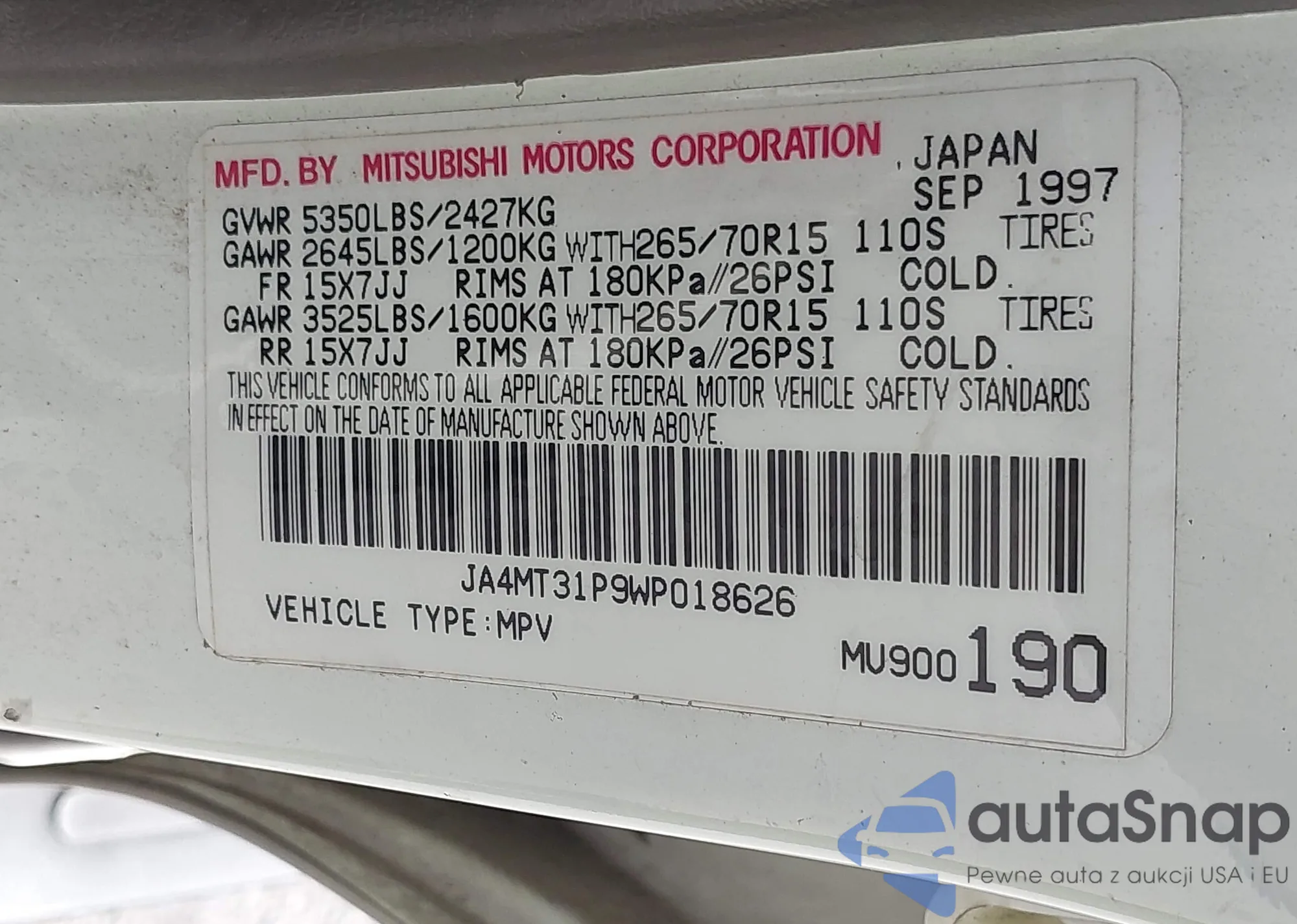 • VIN JA4MT31P9WP018626