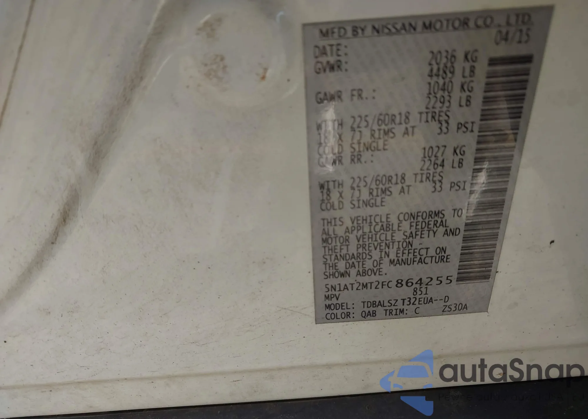 • VIN 1C4RDJAG8JC146269