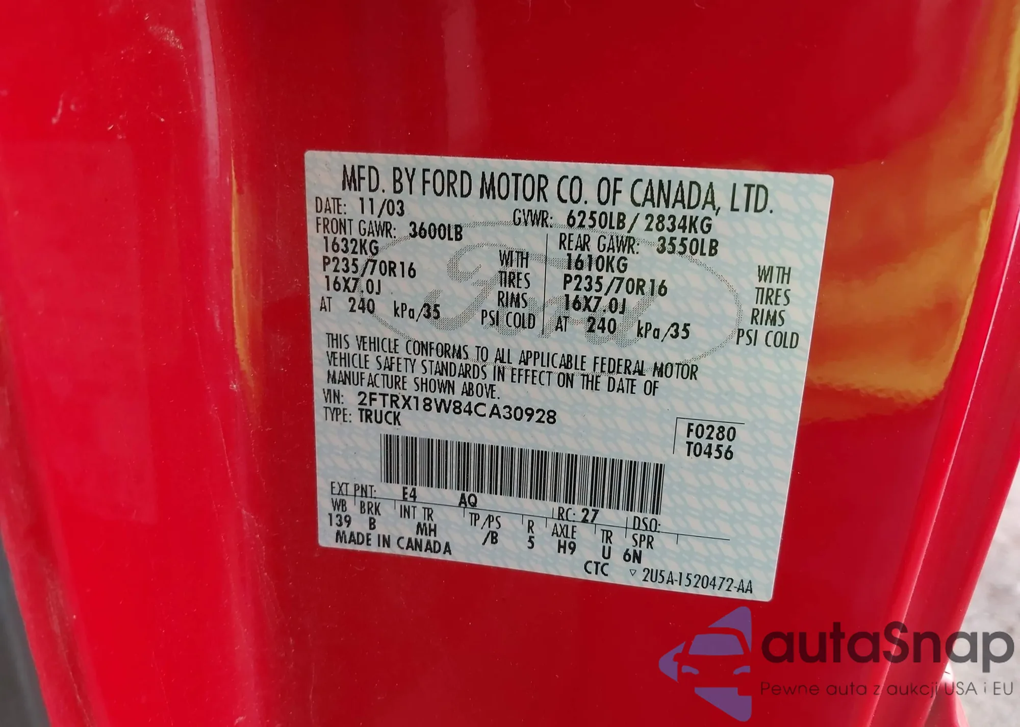 • VIN 2FTRX18W84CA30928