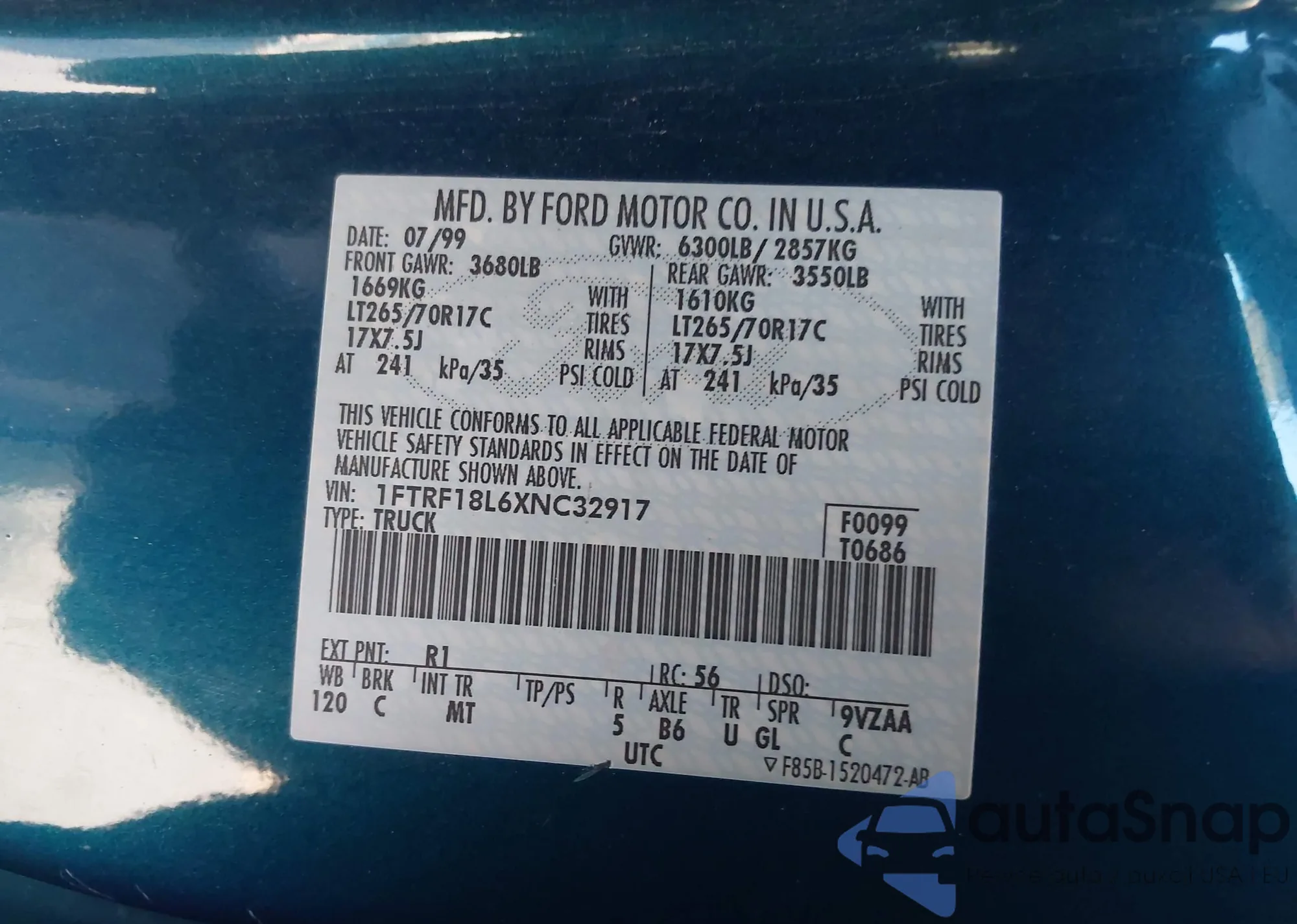 • VIN 1FTRF18L6XNC32917