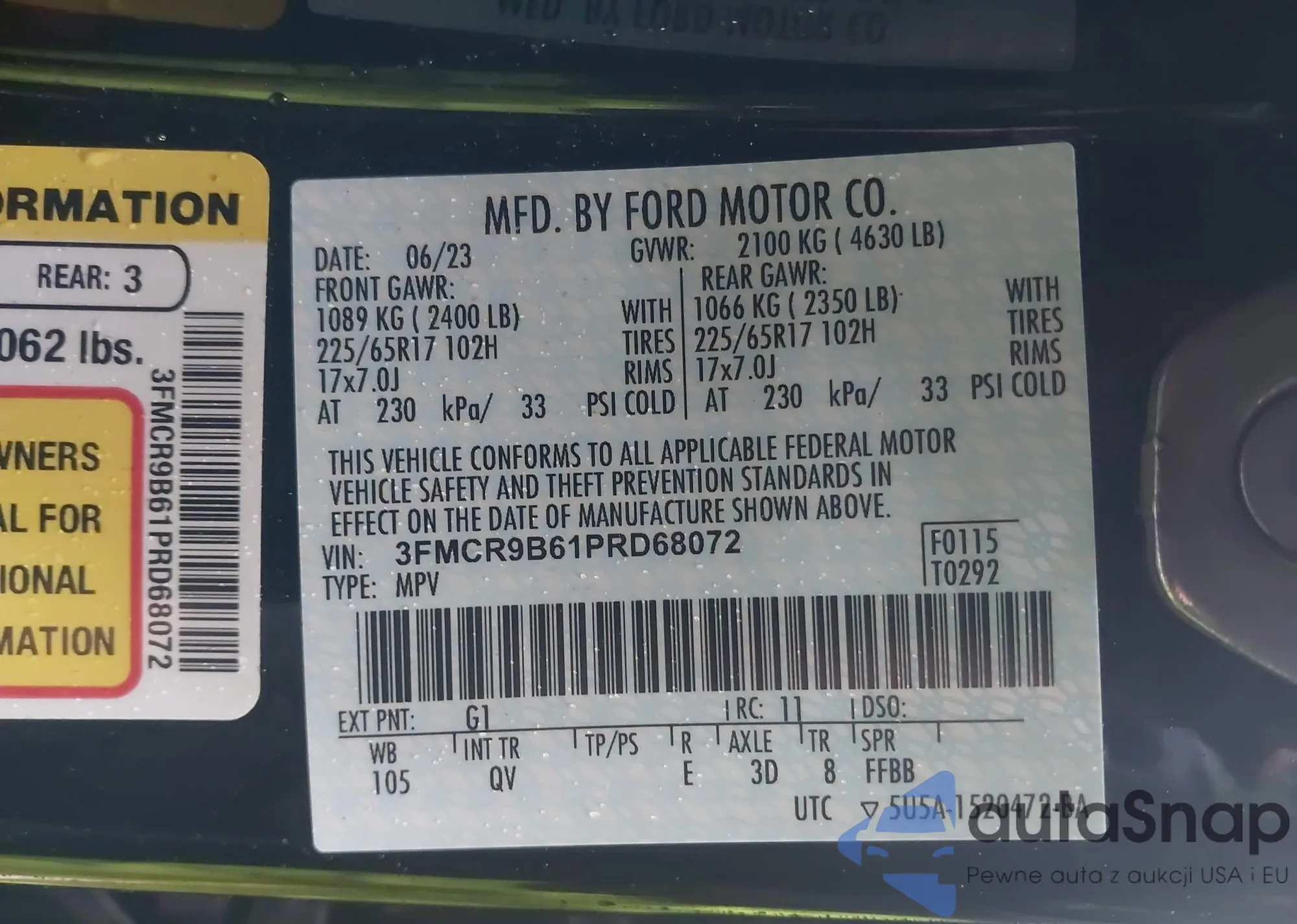 • VIN 3FMCR9B61PRD68072
