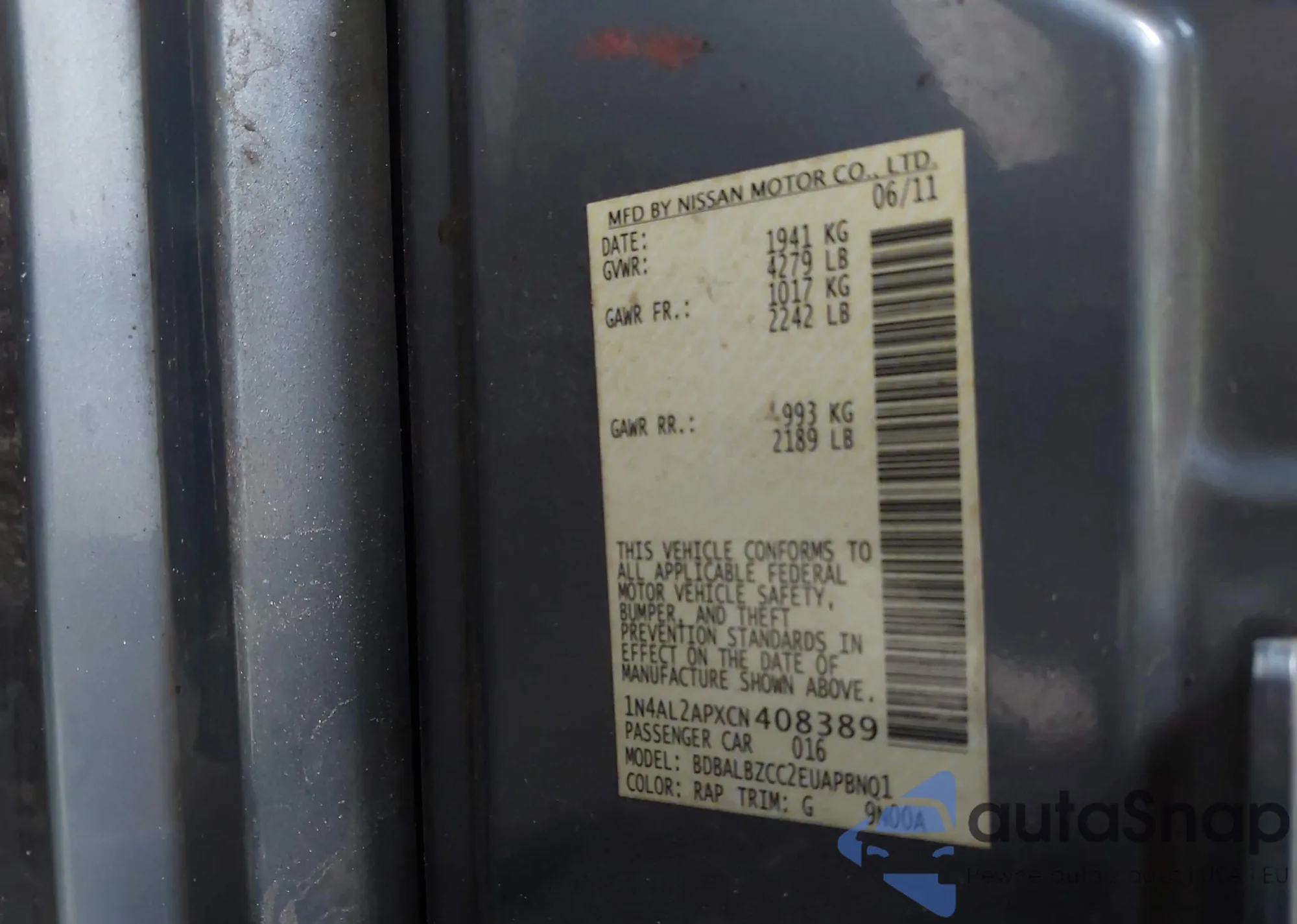 LOT: 43382217 VIN: 1N4AL2AP6BN421073