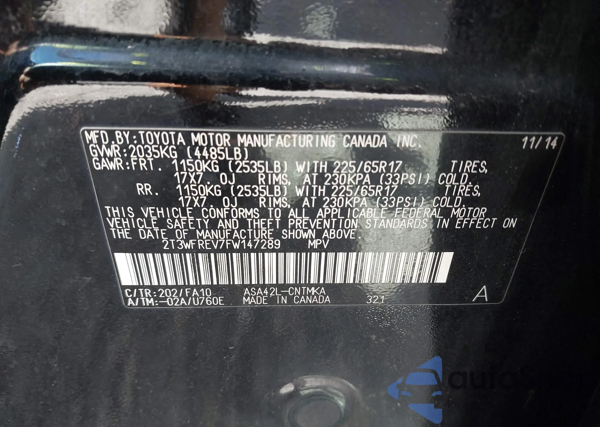 LOT: 43413855 VIN: 2T3WFREV7FW147289