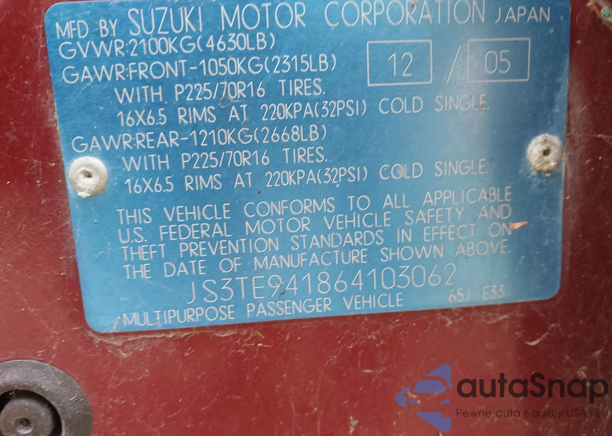 • VIN JS3TE941864103062