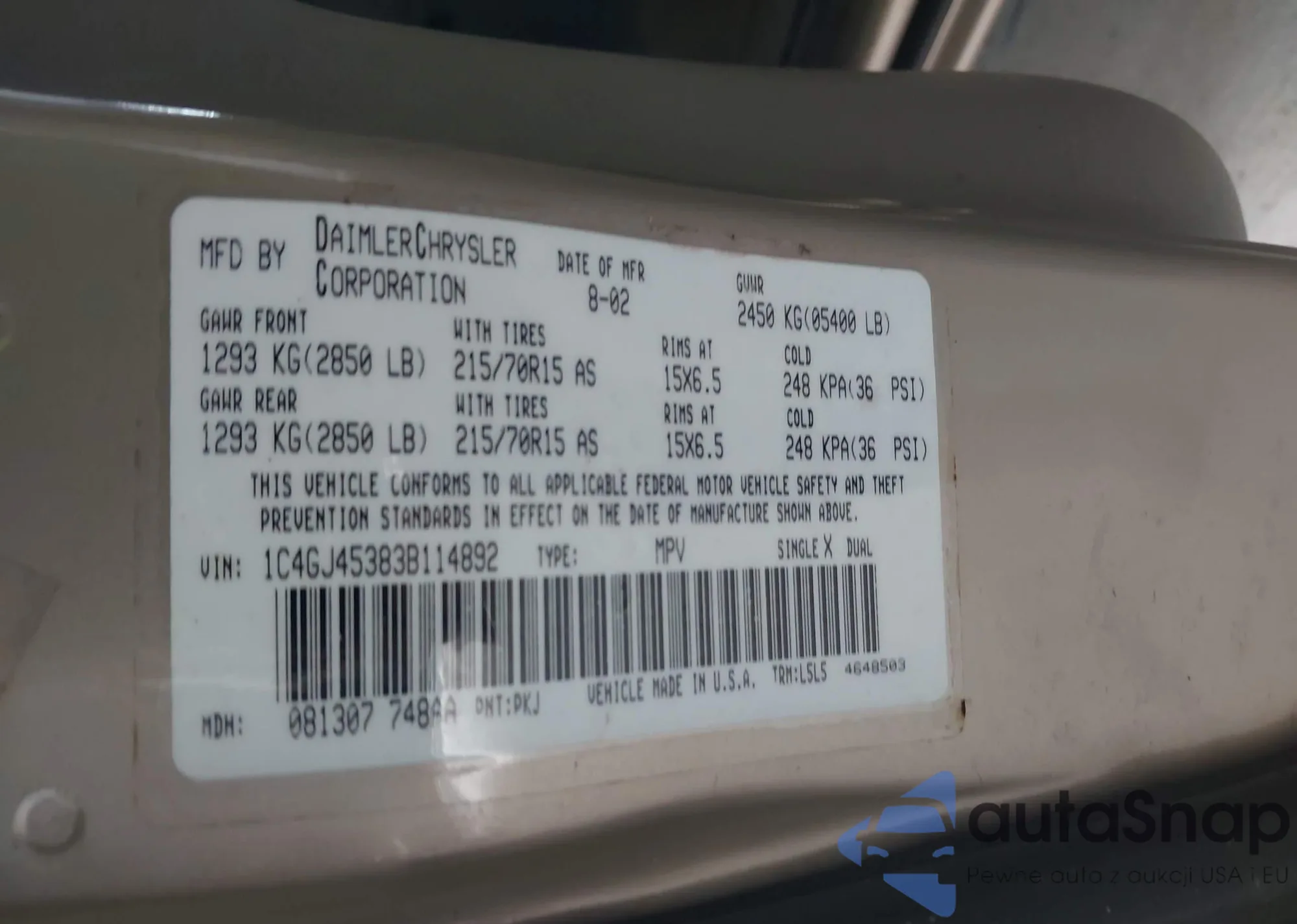 • VIN 1C4GJ45383B114892