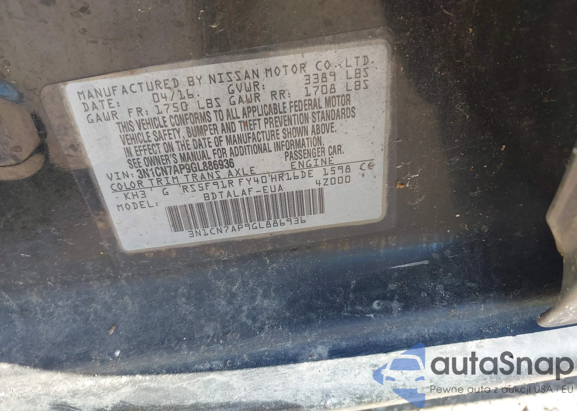 • VIN 3N1CN7AP9GL886936
