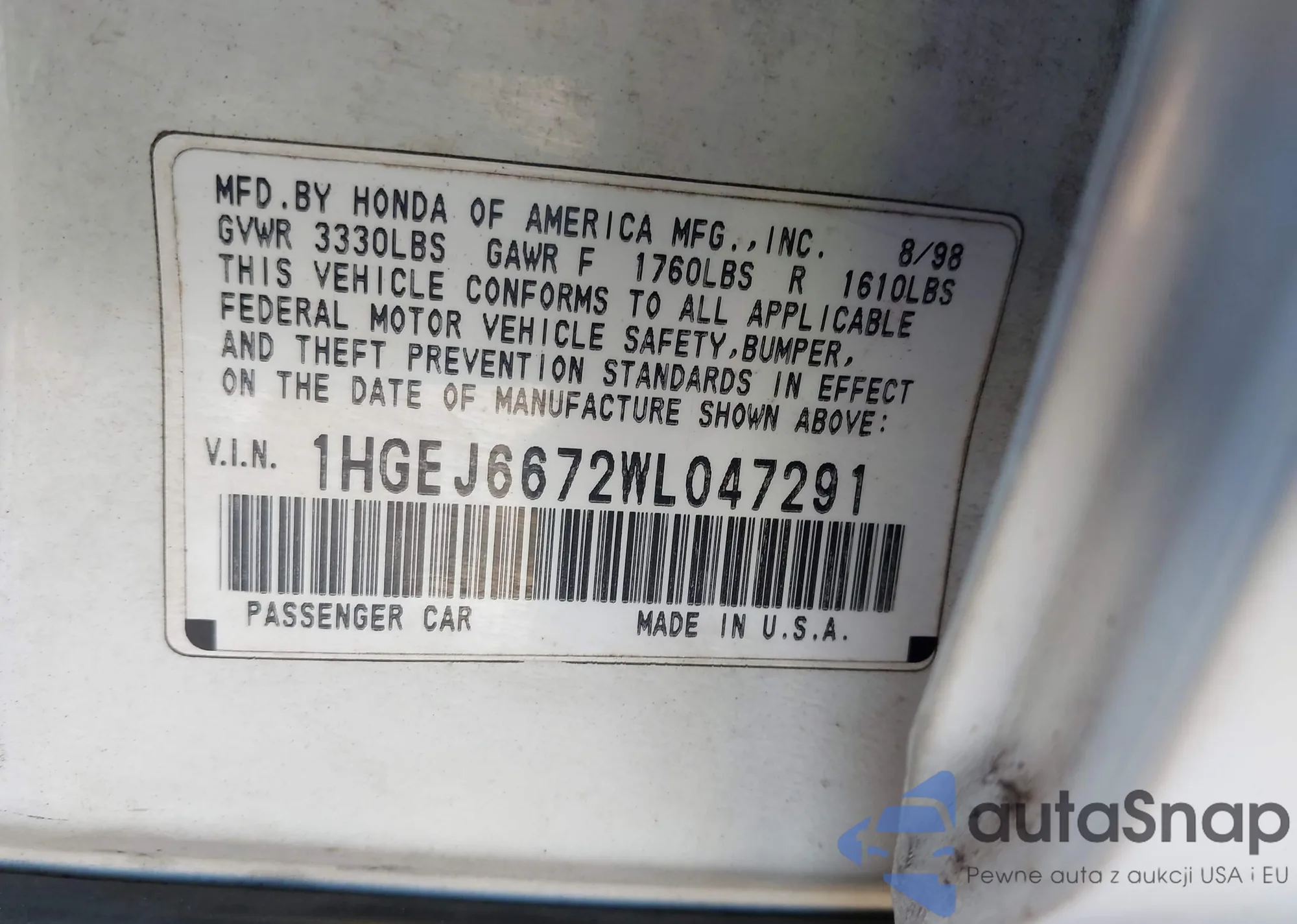 • VIN 1HGEJ6672WL047291