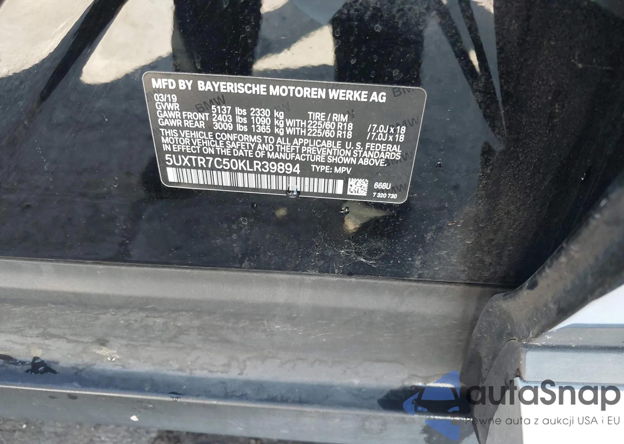LOT: 43471972 VIN: 5UXTR7C50KLR39894