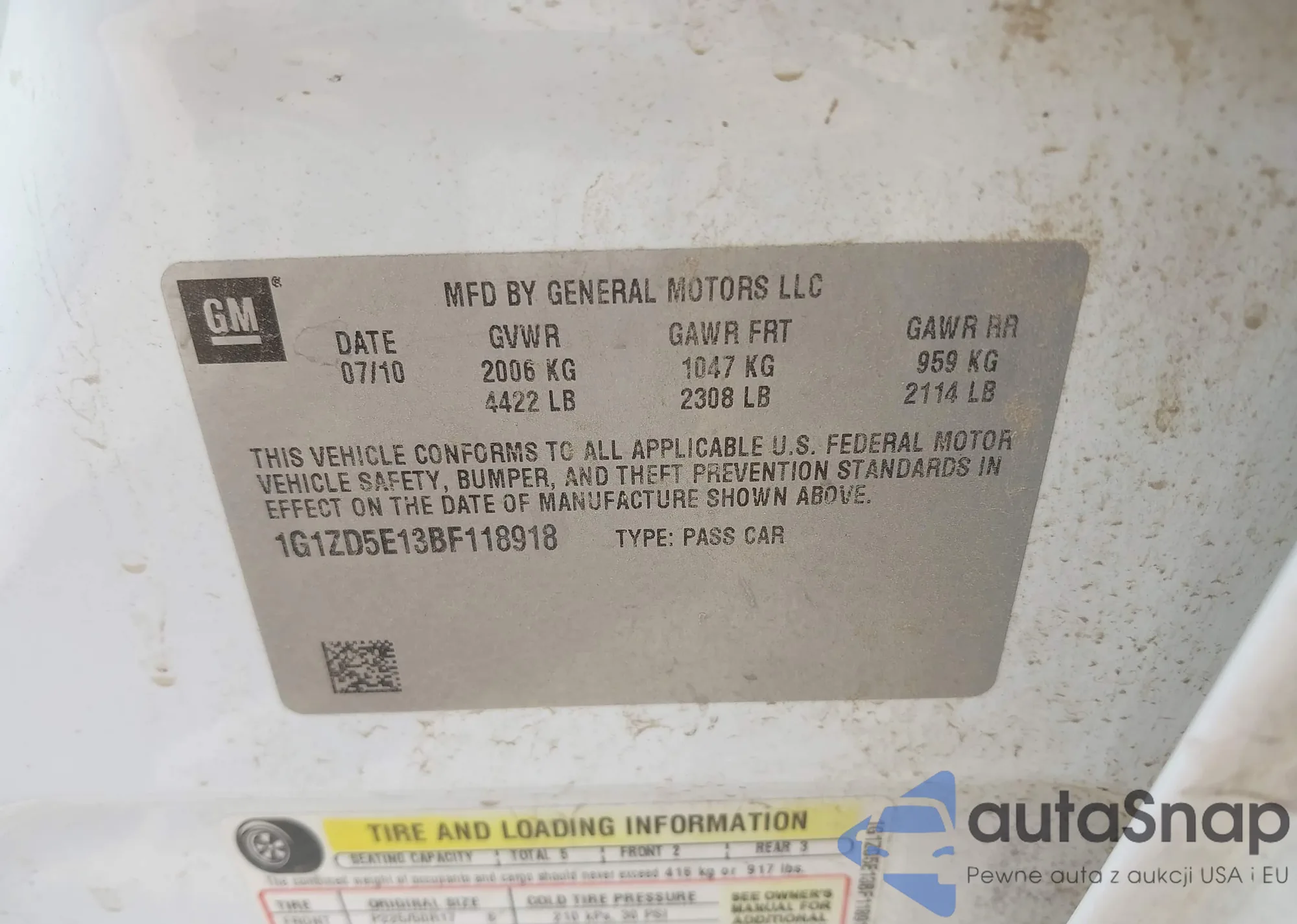 • VIN 1G1ZD5E13BF118918