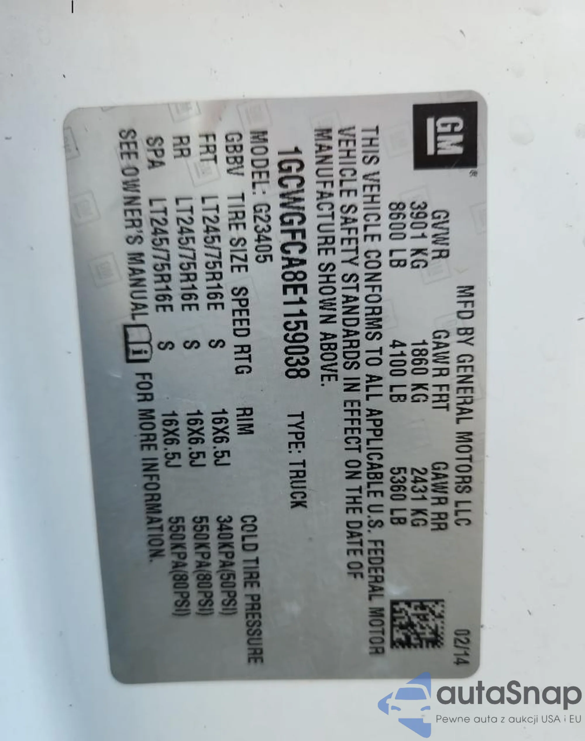 LOT: 86708945 VIN: 1GCWGFCA2B1153599