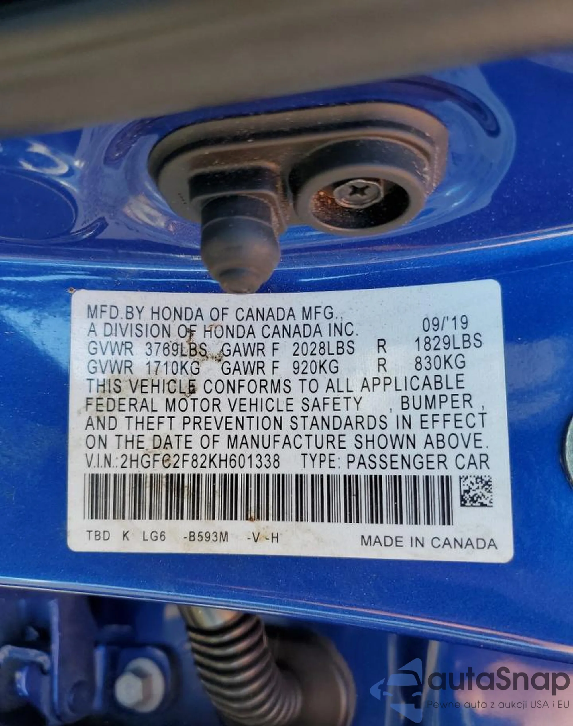 LOT: 71510035 VIN: 1HGCV1F14JA118960