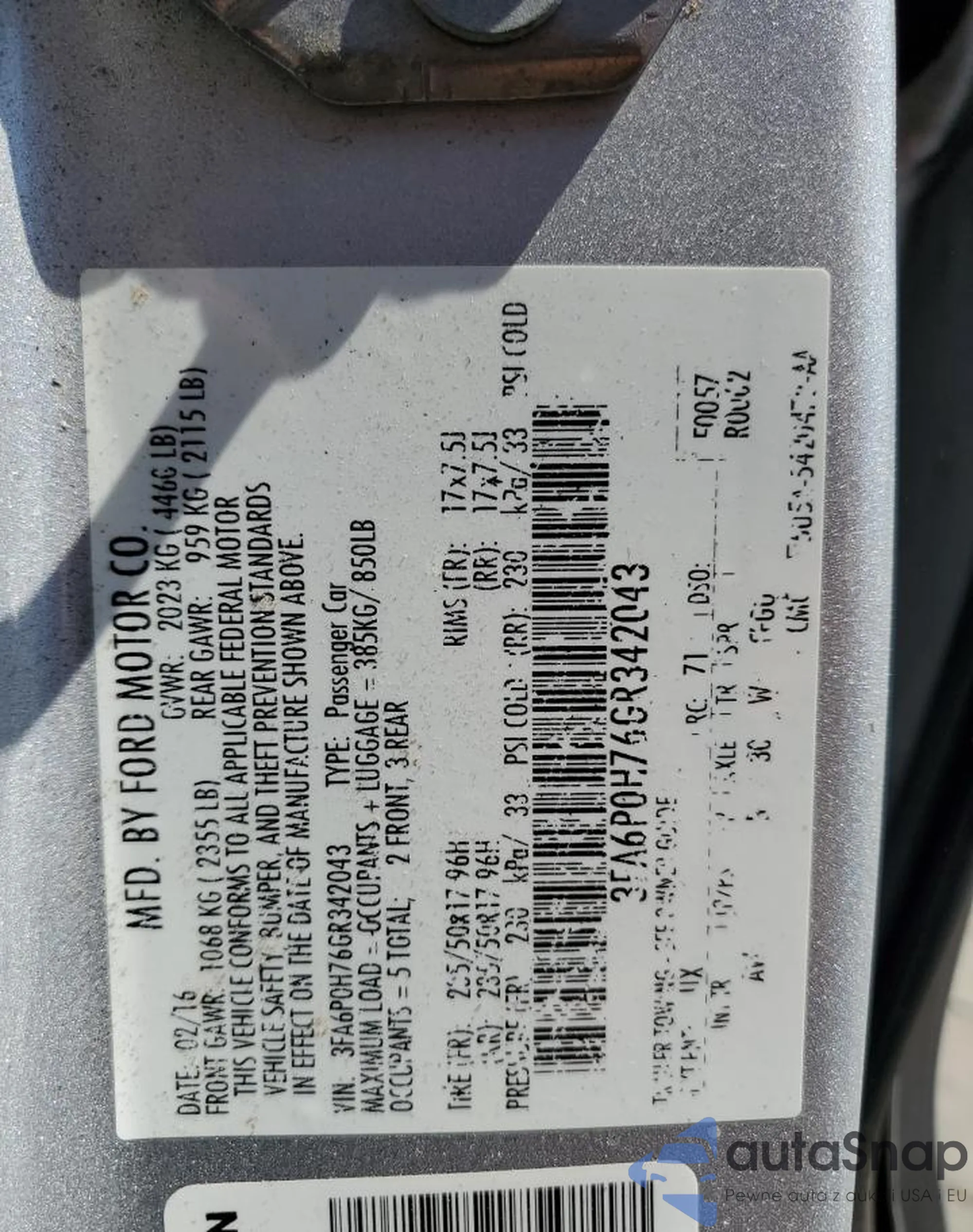 • VIN 3FA6P0H76GR342043