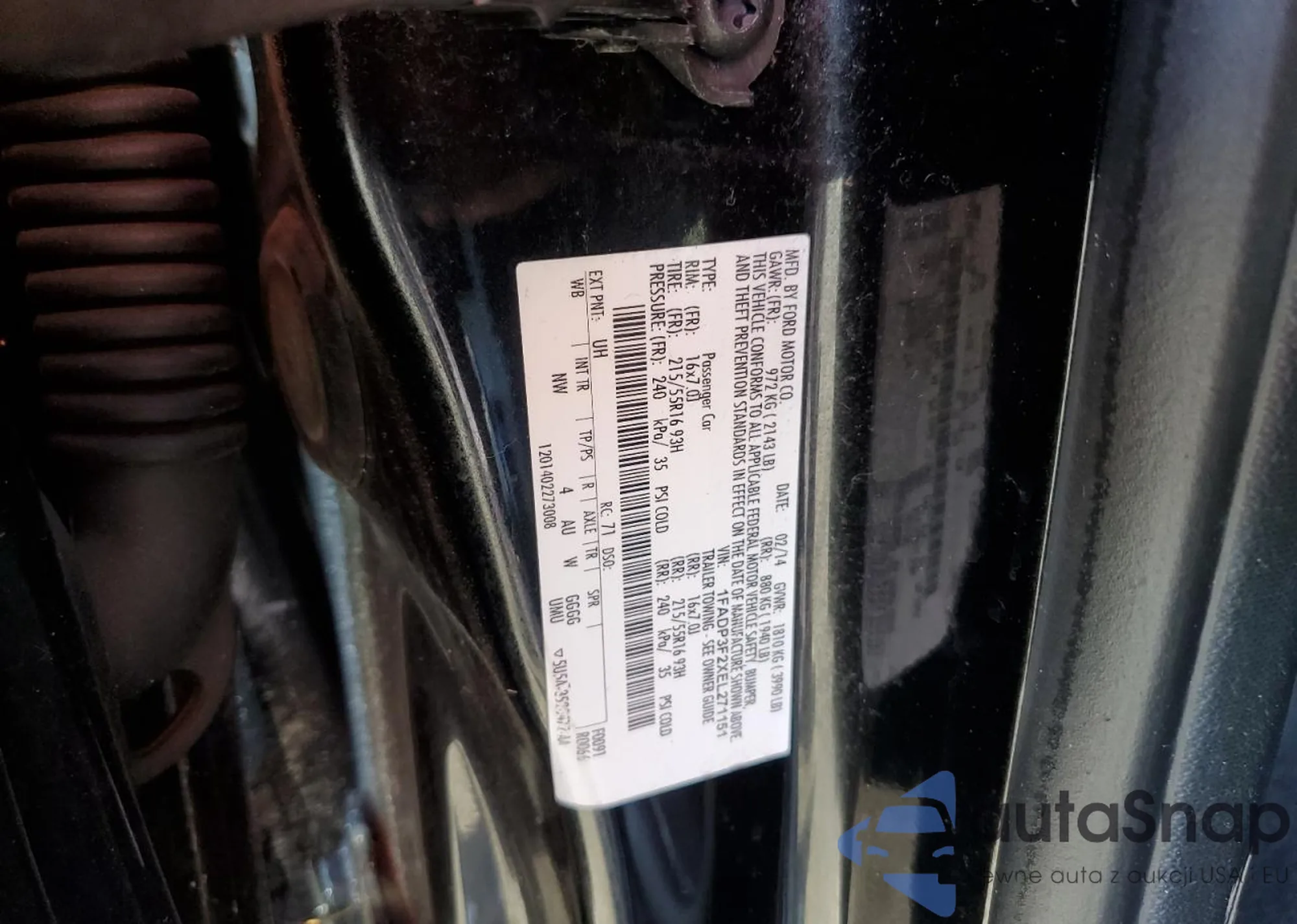 • VIN 1FADP3F2XEL271151