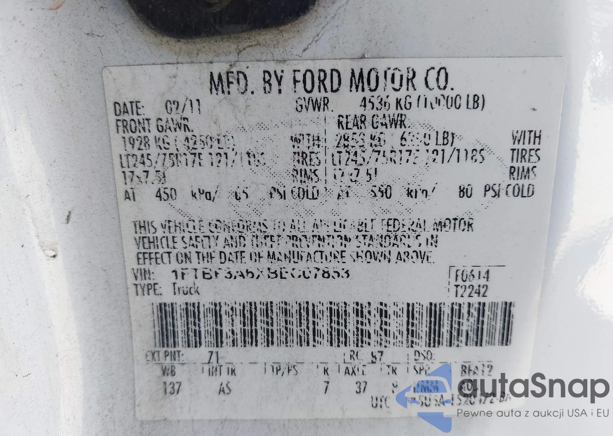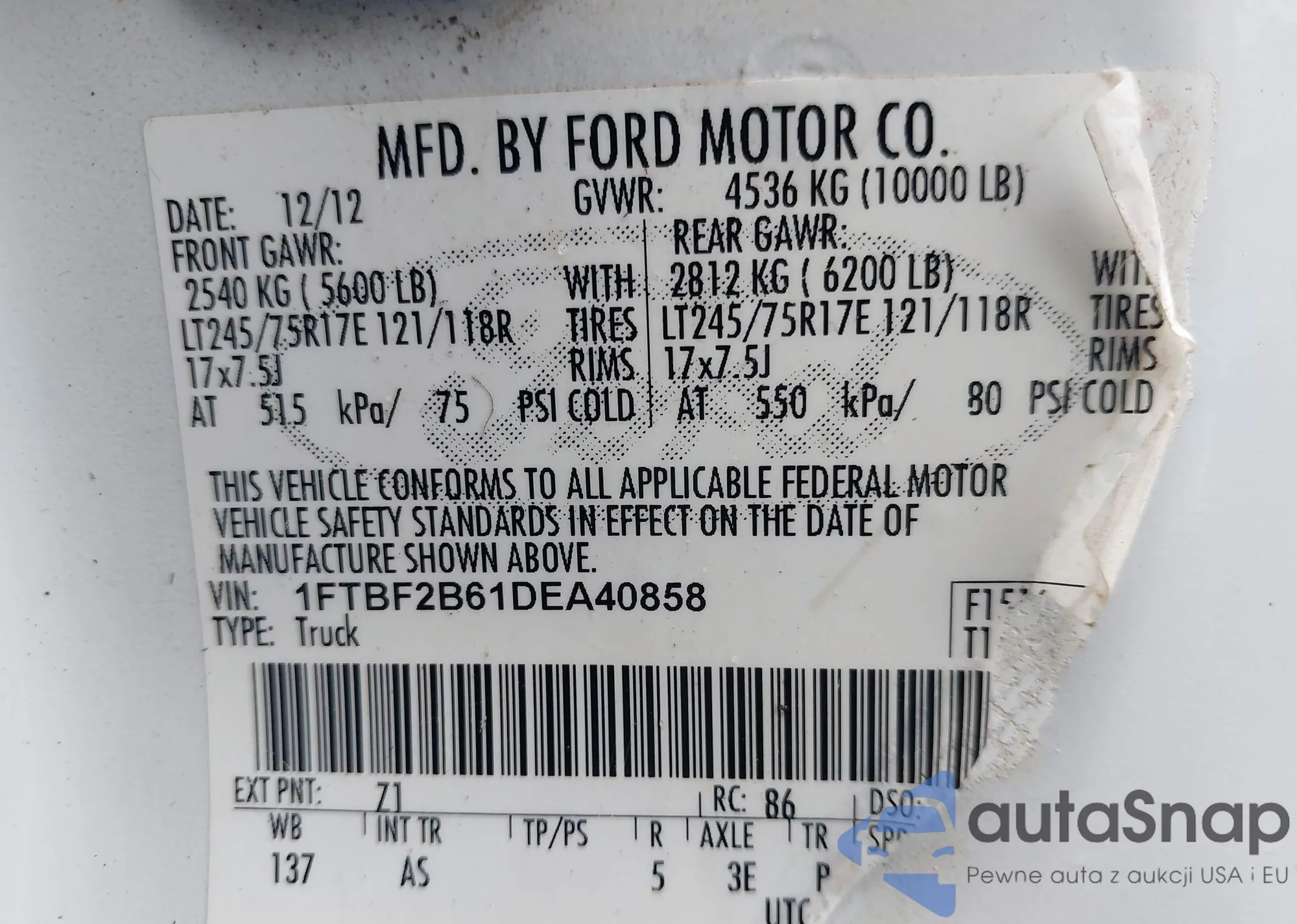 • VIN 1FTBF2B61DEA40858