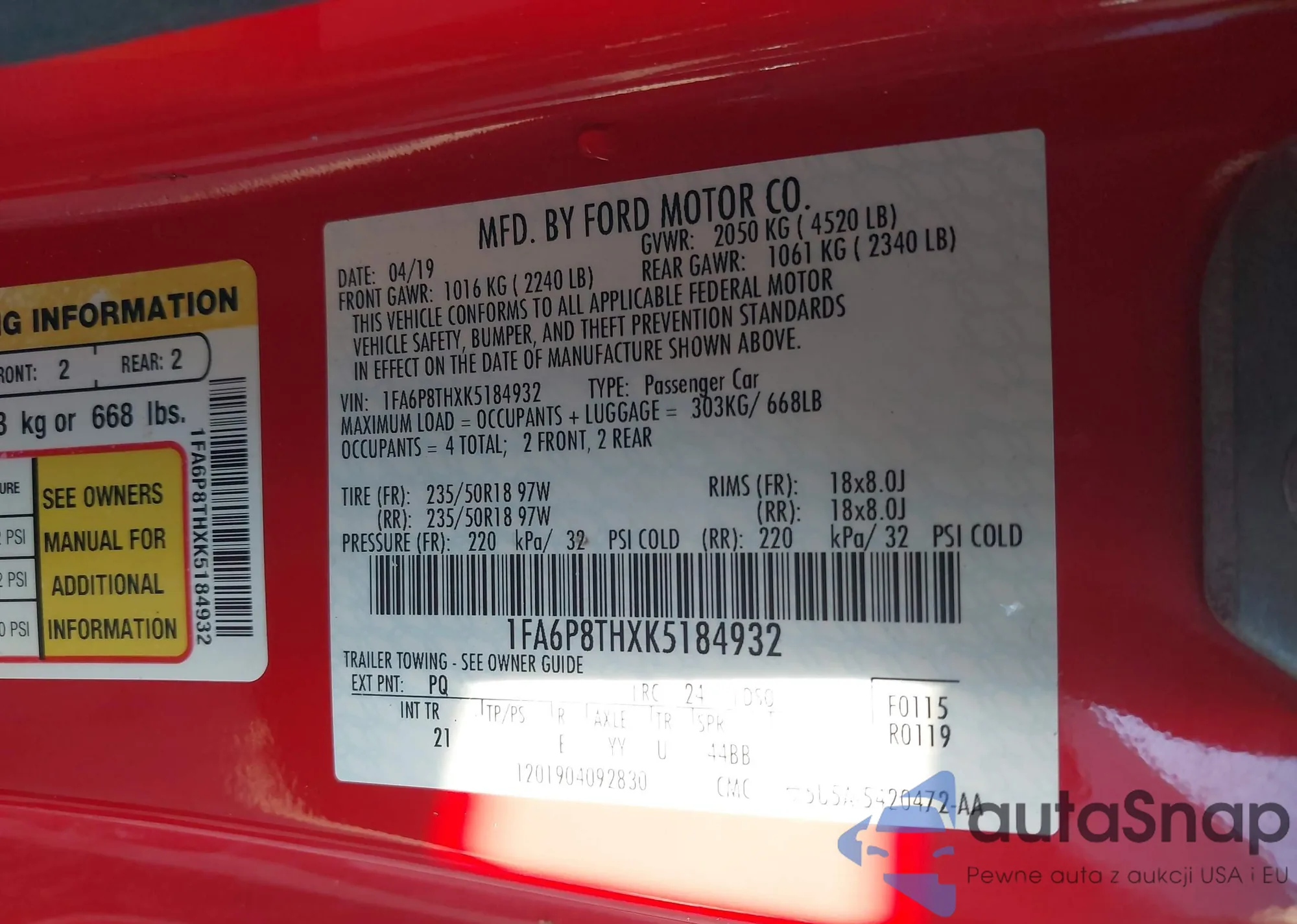 • VIN 3FADP4BJXJM124517